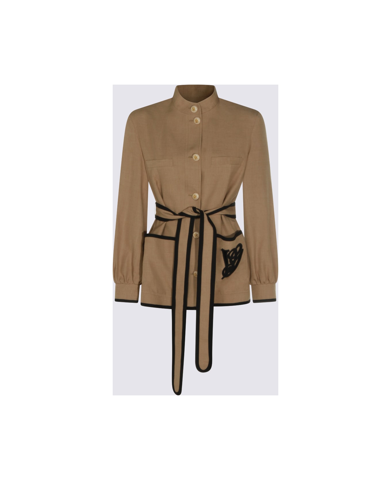 Beige viscose casual jacket from Valentino featuring long sleeves, buttons fastening, contrasting trims, pockets, buttoned cuffs, belt waist and regular fit. Composition: _, 86% Viscose, 14% Linen