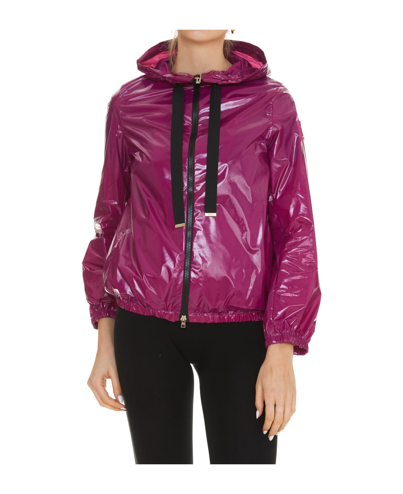 - man jacket with zip closure, hoodie with coulisse, lateral pocket, purple - Composition: 100% Polyammide