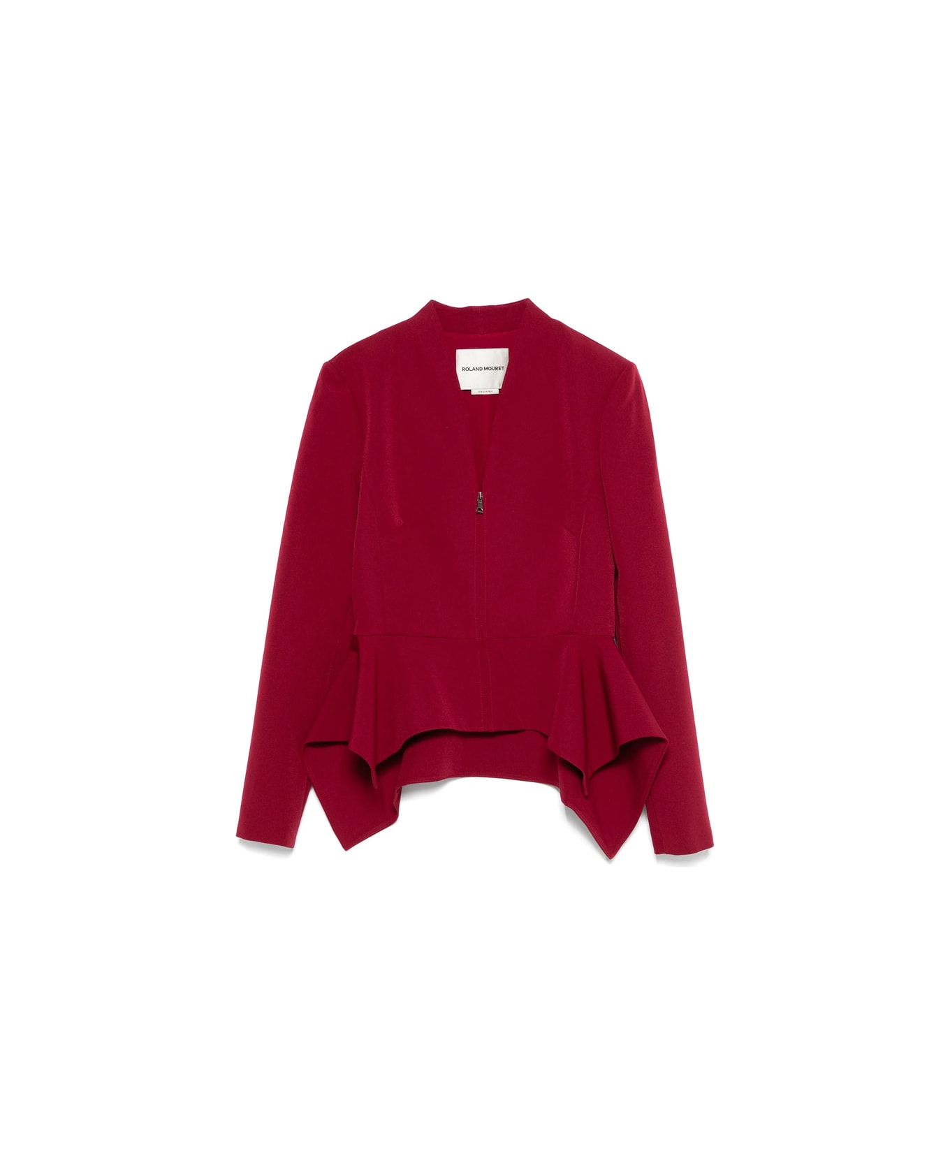 dark red front zip fastening stand-up collar V-neck long sleeves
