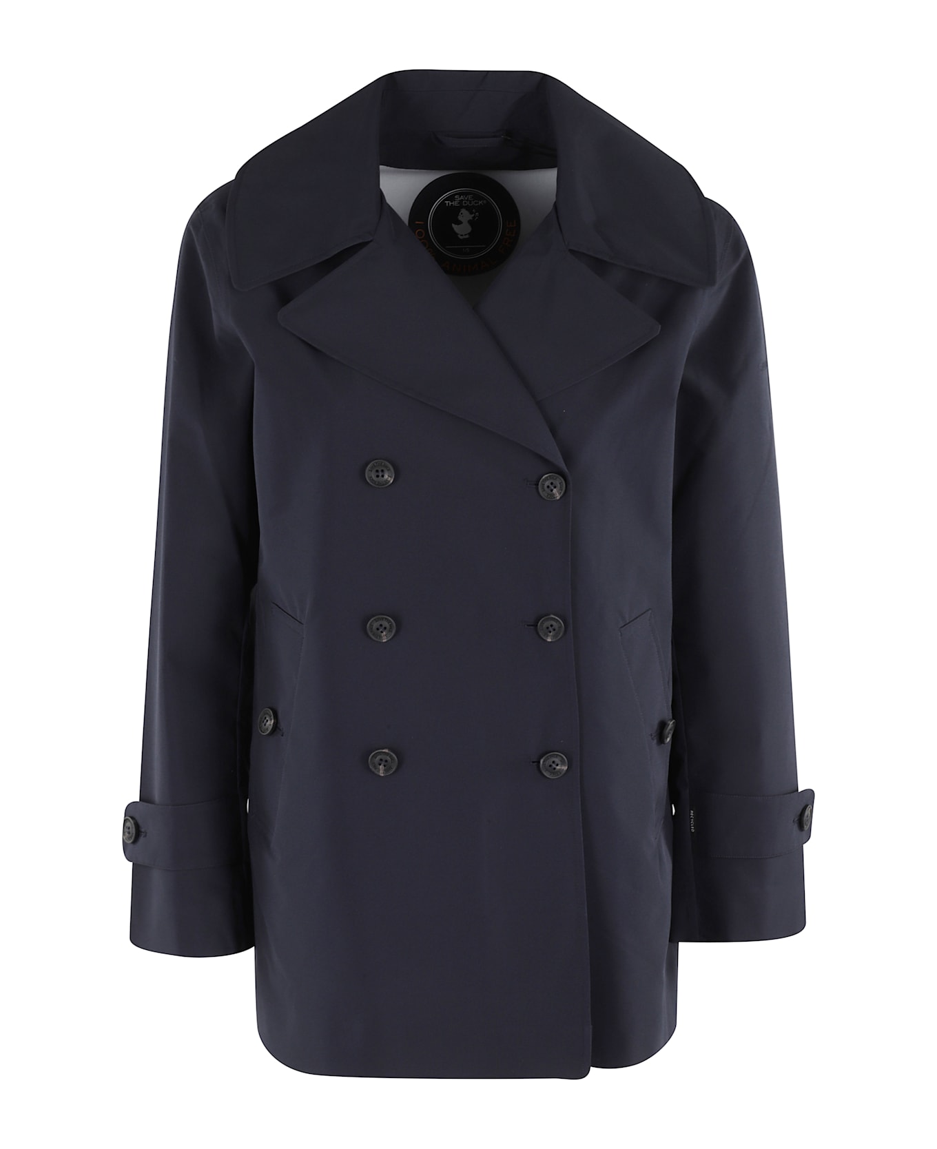 Sofi trench coat -Save The Duck -Color blue black -Long sleeve -Button closure -Side pockets