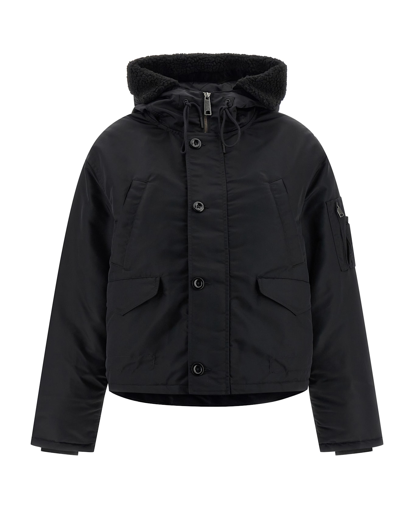 'Oltera' water-repellent medium weight nylon fabric jacket, diamond-shaped quilted lining, adjustable hood with removable teddy-effect fleece insert, crop style, high neck, front zip and button closure, pockets, long sleeves with stretch knit cuffs, drawstring on the hem.