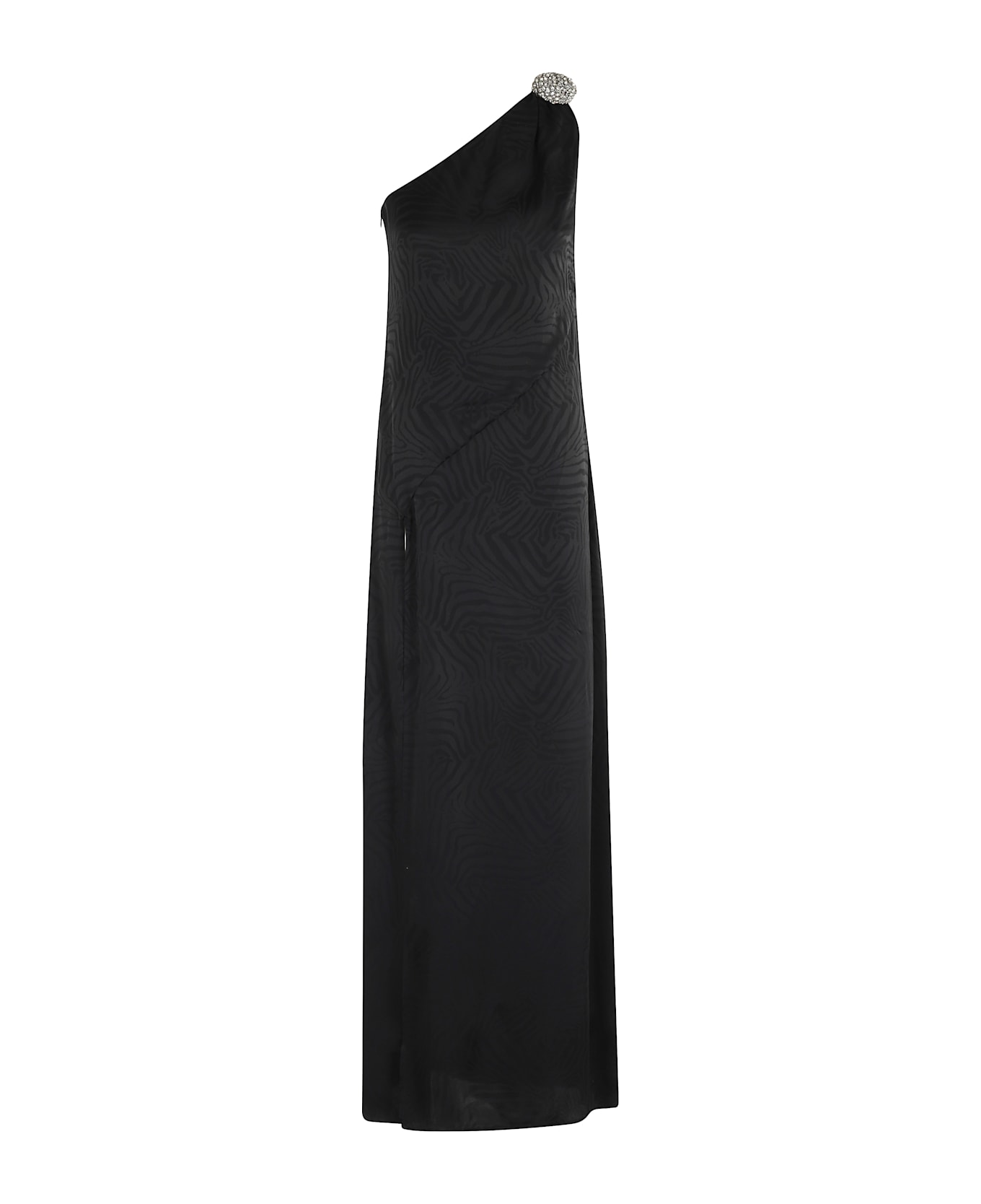 Long Dress - Amen - black color - zebra jacquard pattern - one-shoulder silhouette - jewel detail on shoulder - high side slit - foot length
