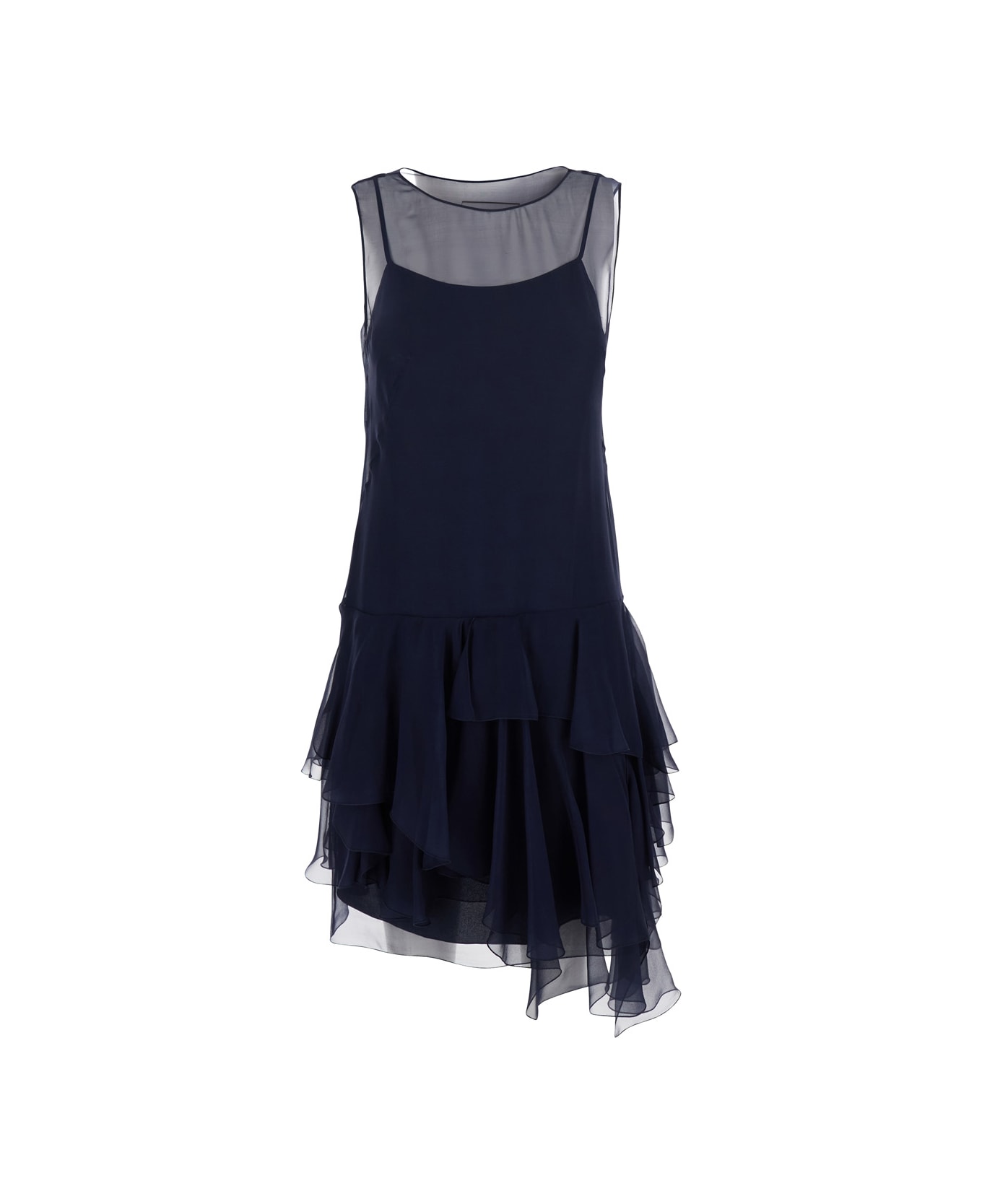 Dress Blue Thin shoulder straps Sleeveless Square neckline Backless Ruffle details Silk Regular fit