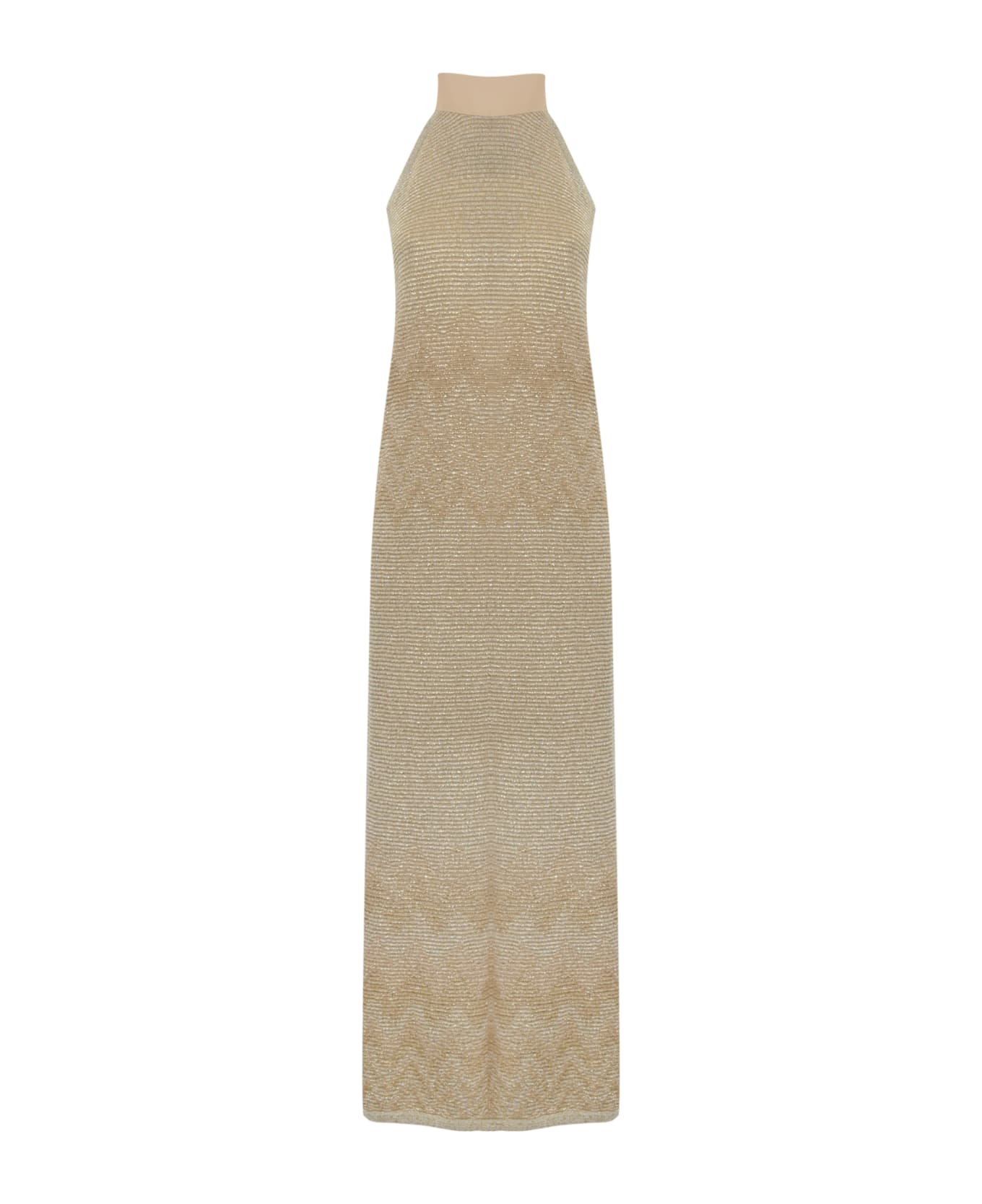 women's ankle length dress: viscose and lurex sleeveless halter neckline high collar with sash to tie on the back of the neck degrade geometric design lined regular fit composition: 70% viscose, 30% polyester lining: 97% polyester, 3% elastane