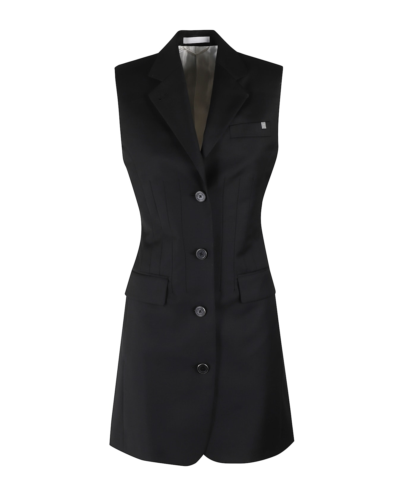 Dress - Helmut Lang - Black color - Wool twill fabric - Lapel neckline - Sleeveless - Side flap pockets - Front button closure - Fitted fit.