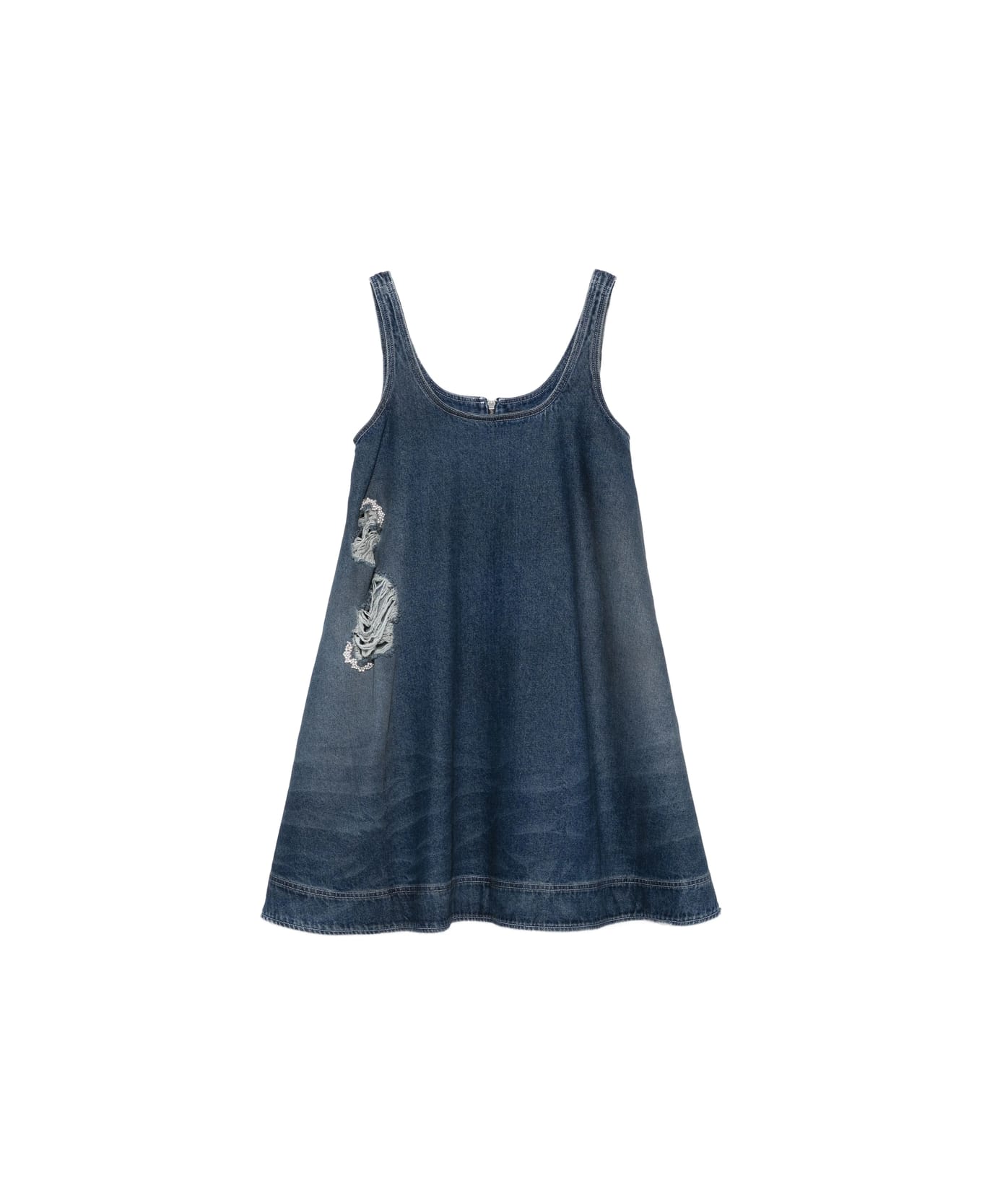 blue A-line distressed effect sleeveless rear zip fastening embroidered detailing