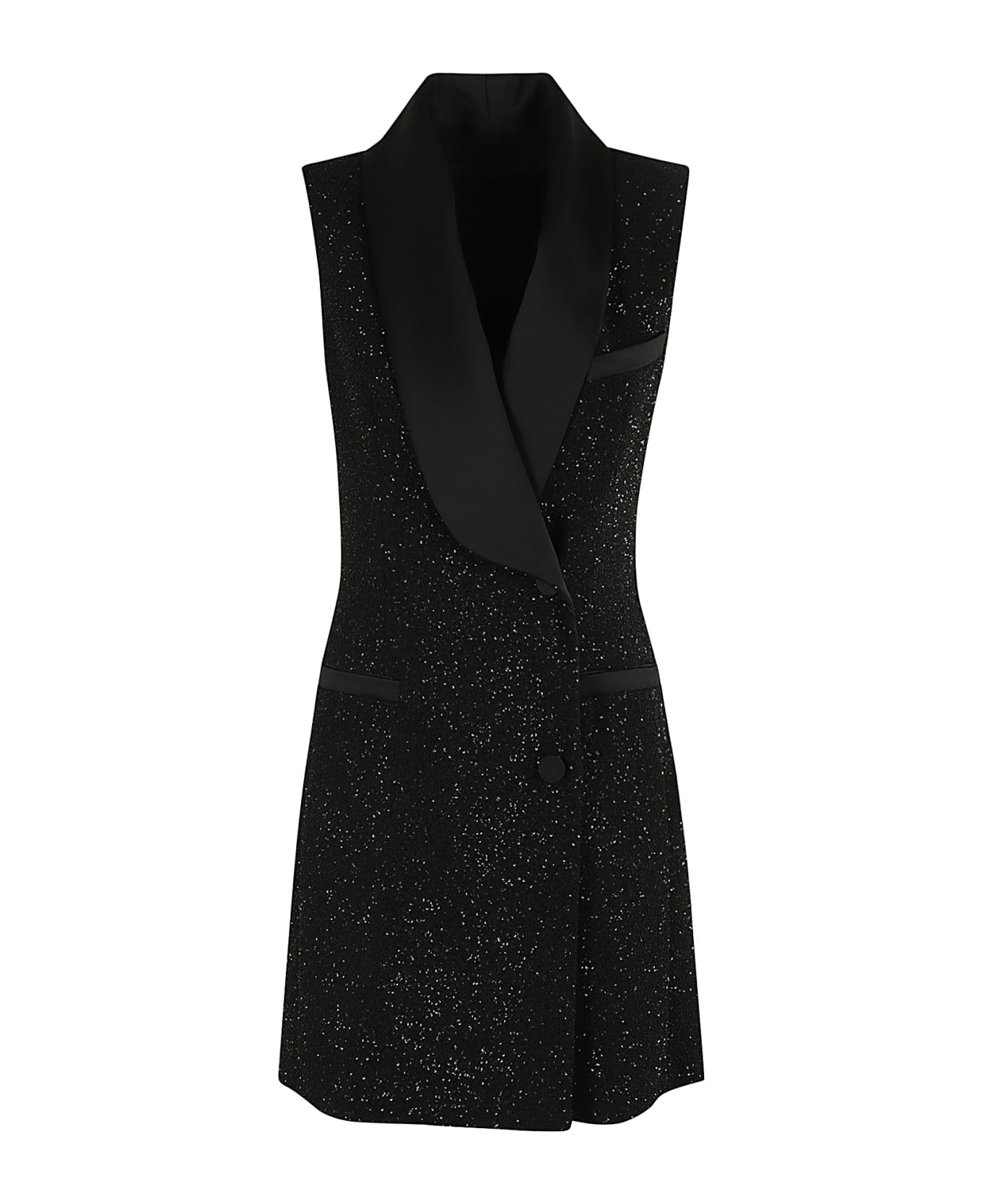 Eiffel dress - Max Mara Piano Forte - black color - sleeveless blazer model - covered with micro sequins - contrasting satin lapels - lined side button closure - contrasting satin welt pockets - top breast pocket