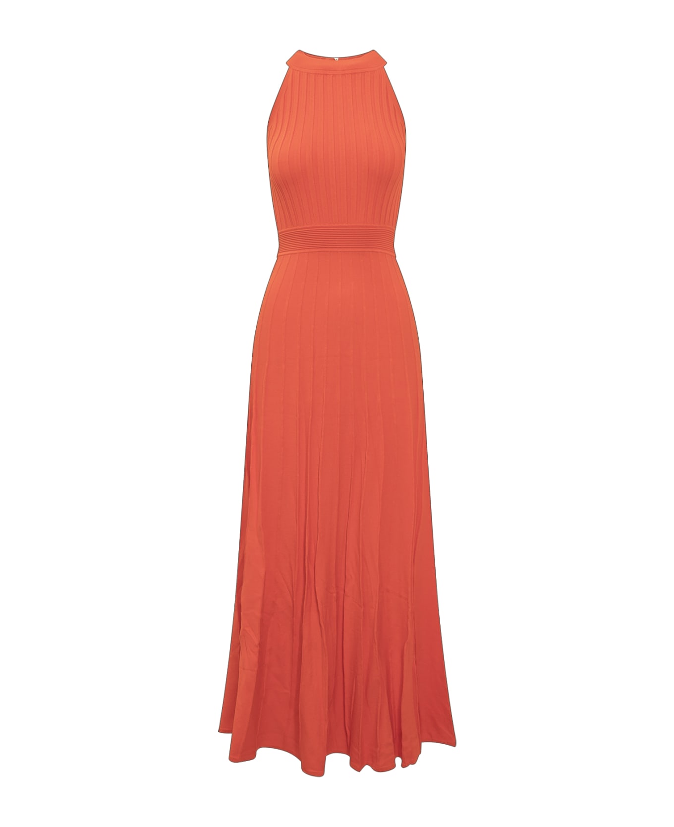 Long crew neck dress. Sleeveless. Zip closure on the back. Ribbed work.