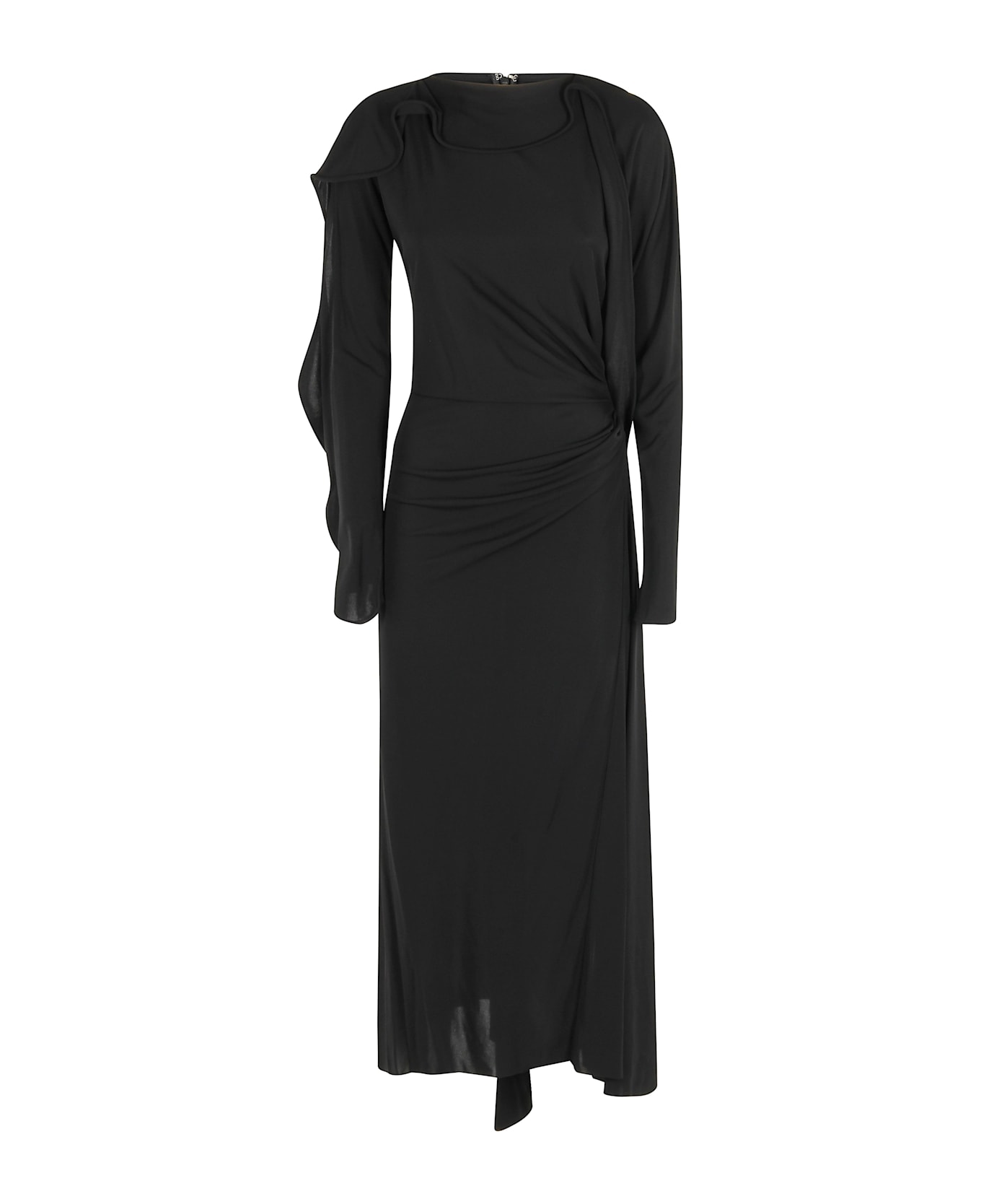 Dress - Victoria Beckham - Black color - Jersey fabric - Draped neckline - Asymmetrical long sleeves - Draped waistband - Flowing skirt - Back zipper closure - Midi length.