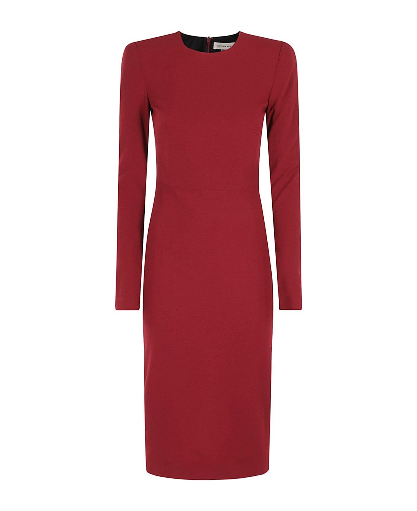 Dress - Victoria Beckham - Red color - Fitted style - Long sleeve - Back zipper closure - Round neckline - Knee length