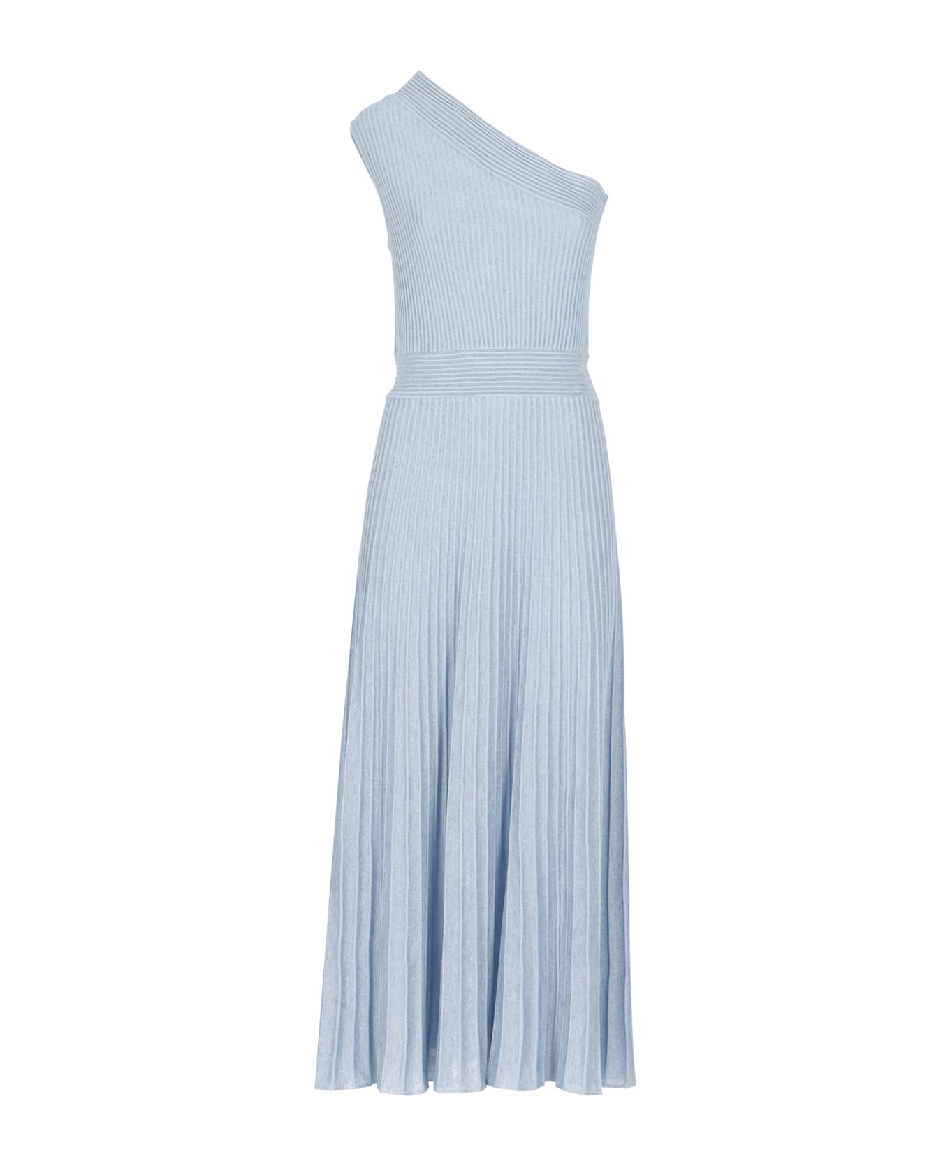 - Light blue D. Exterior viscose one shoulder dress for woman - All-over lurex details - Oblique neck - Ribbed pattern