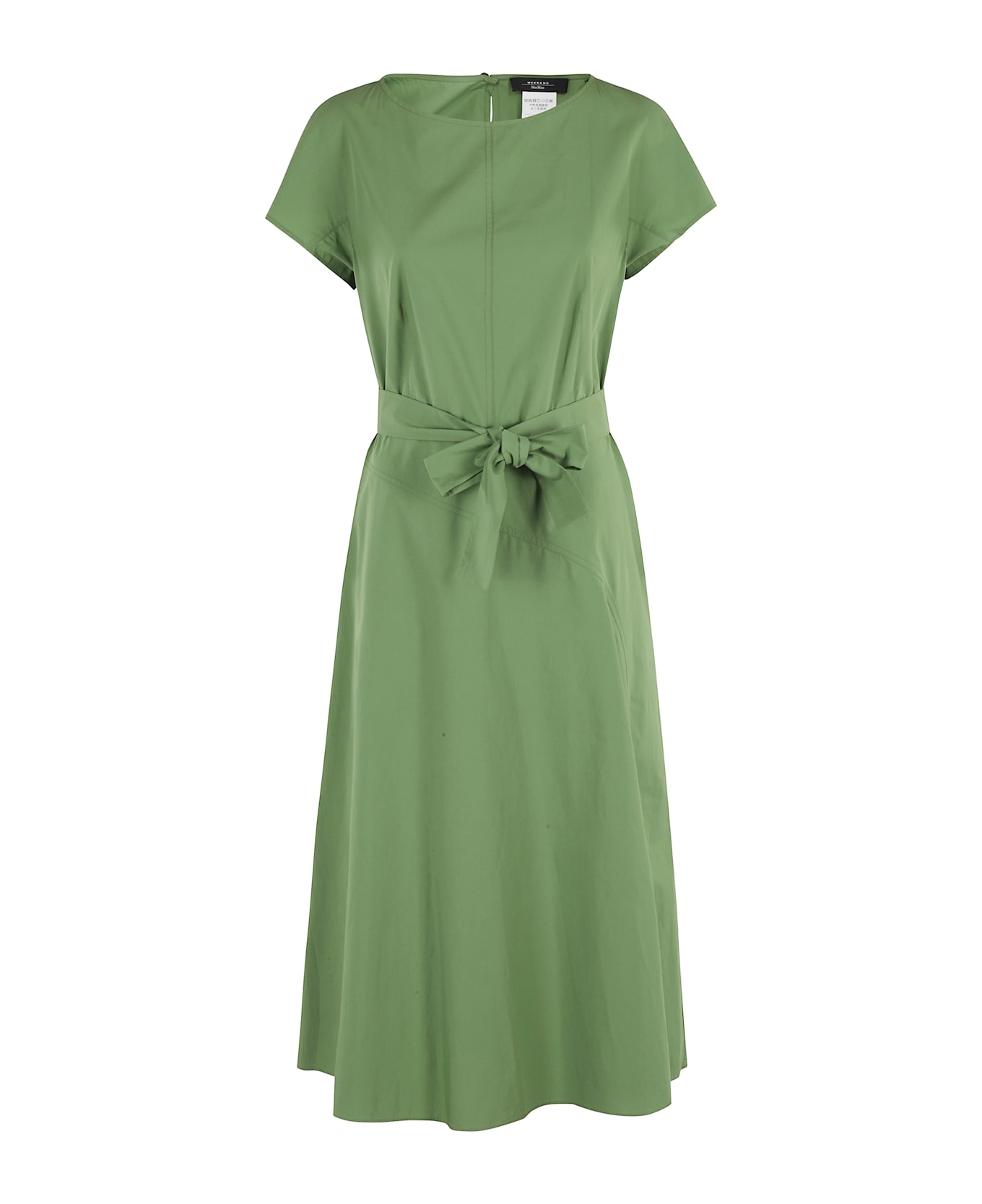 Magma dress - Weekend Max Mara - Green color - Cotton poplin fabric - Crew neck - Short kimono sleeve - Flared midi skirt - Matching belt - Side zipper closure - Regular fit