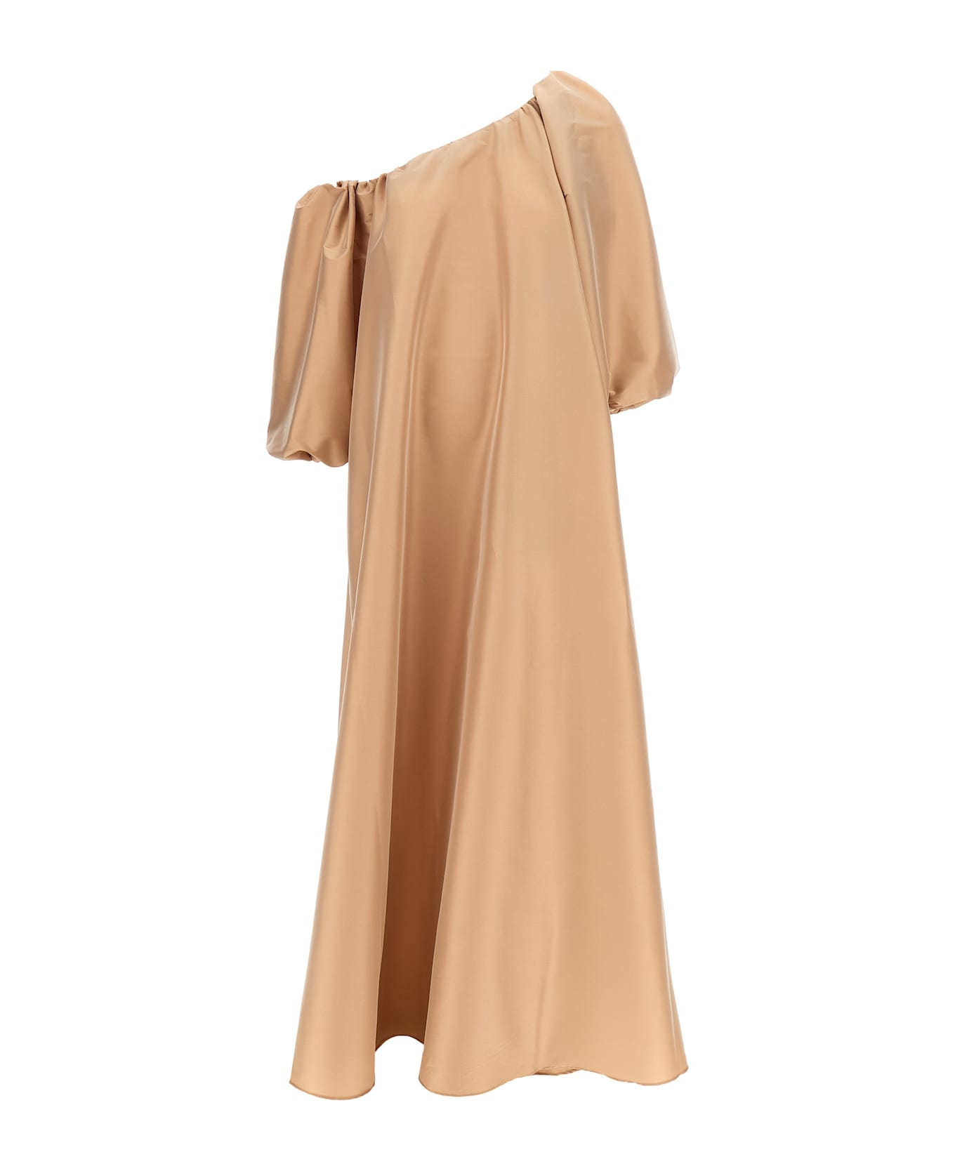 Long 'Nathalie' dress in taffeta fabric, one-shoulder model, long wide balloon sleeves, pockets.