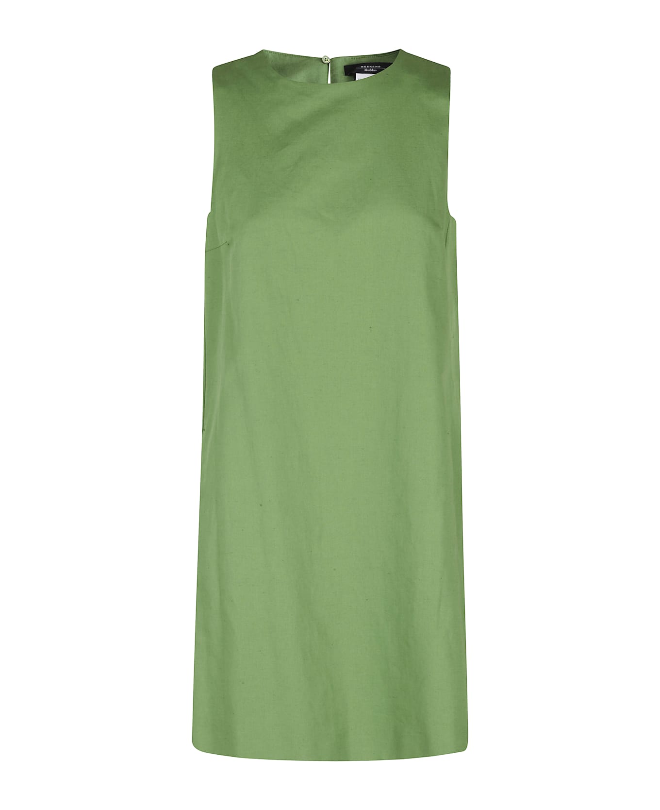 Racer dress - Weekend Max Mara - green color - cotton canvas and linen - scoop neckline - sleeveless - drop button closure at back - A-line silhouette - pockets inserted at sides - above-the-knee length