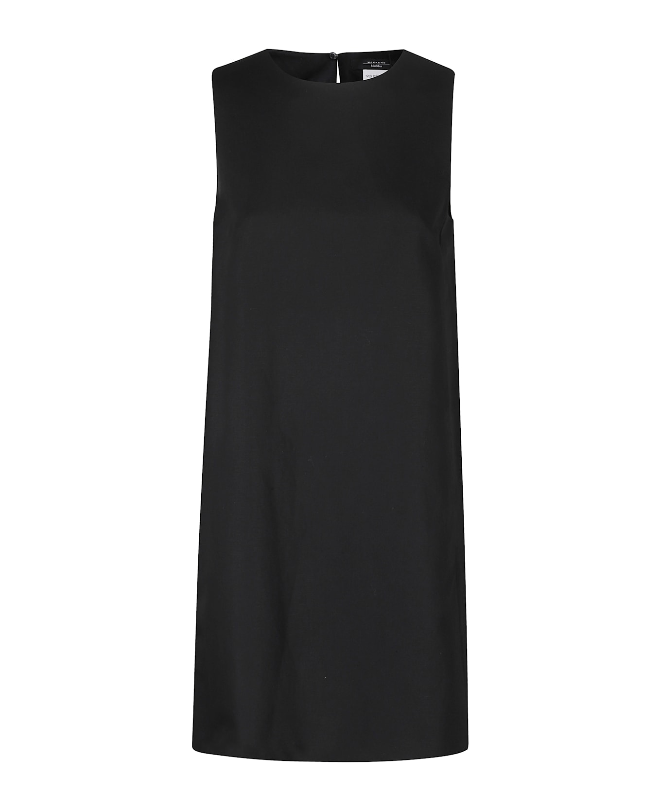 Racer dress - Weekend Max Mara - black color - cotton canvas and linen - scoop neckline - sleeveless - drop button closure at back - A-line silhouette - pockets inserted at sides - above-the-knee length
