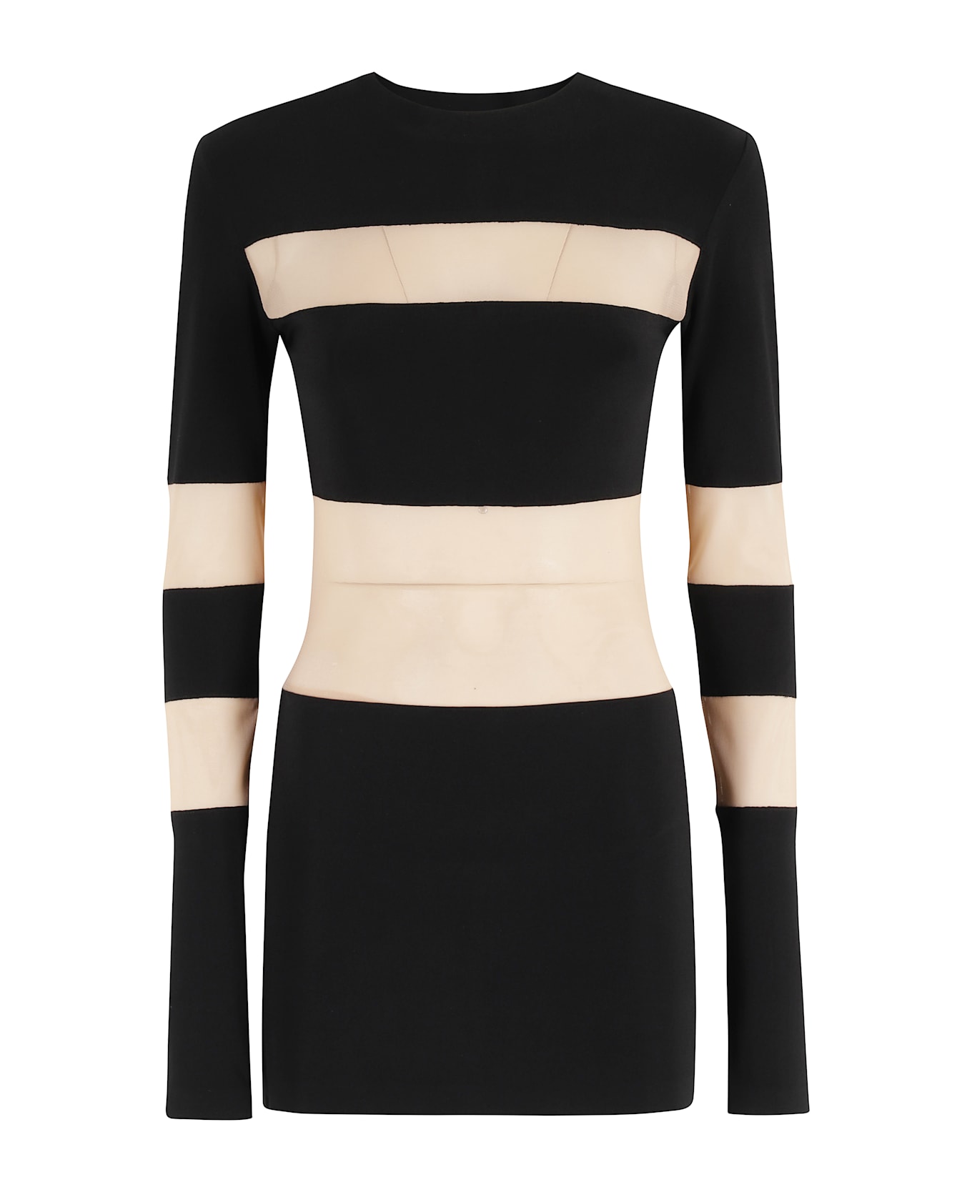 Spliced Mini Dress - Norma Kamali - Black and nude color - Striped lycra and mesh fabric - Crew neck - Long sleeve - Built-in bodysuit - Tight fit