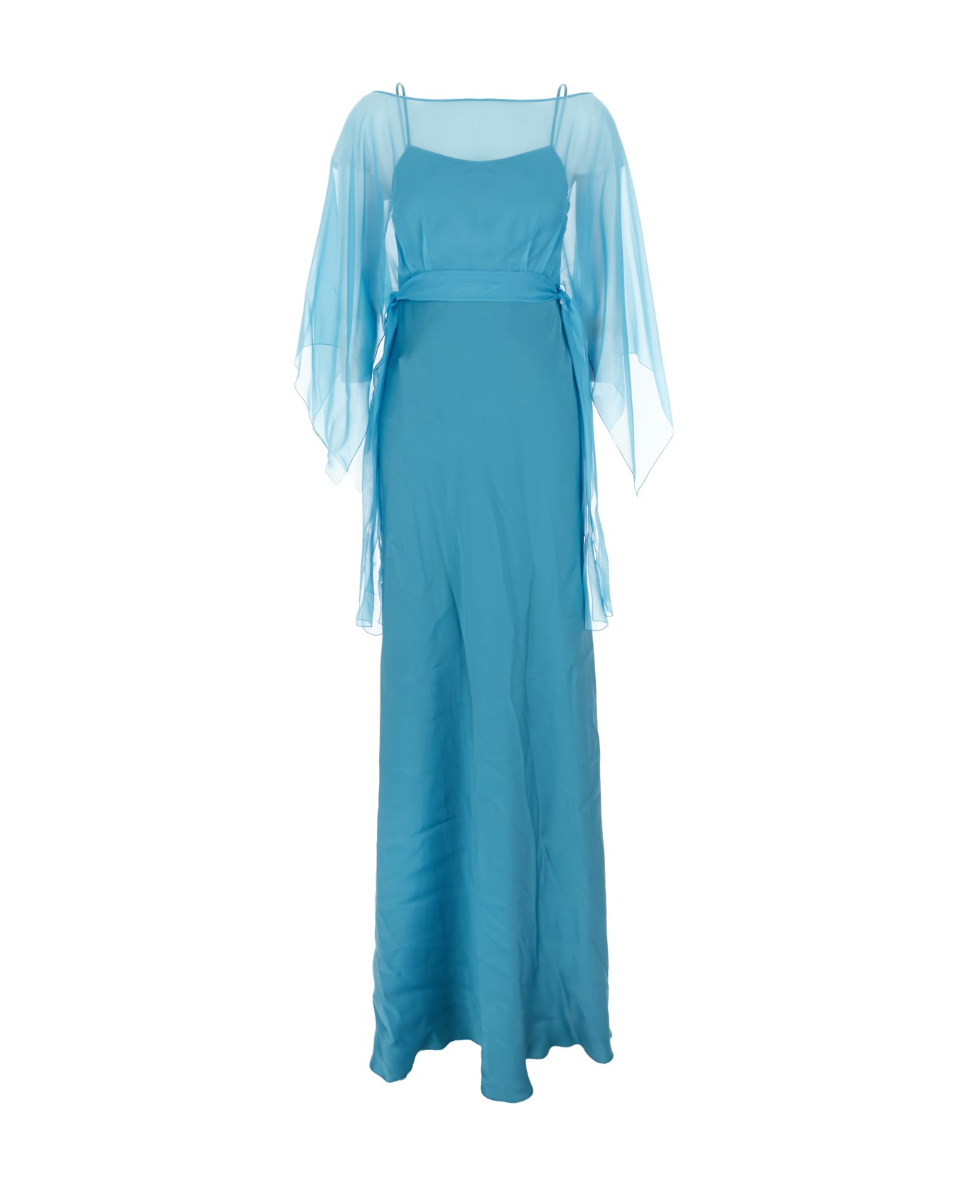 Turquoise Acetate Blend Long Dress