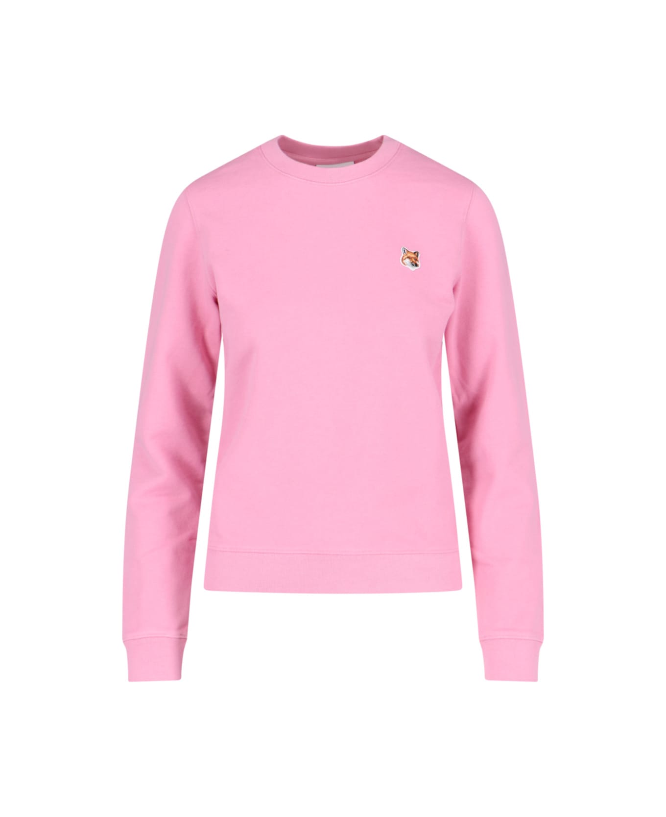 Maison Kitsuné 'Fox Head' crew neck sweatshirt in pink cotton with multicolor logo patch on the chest, ribbed trims, straight hem.