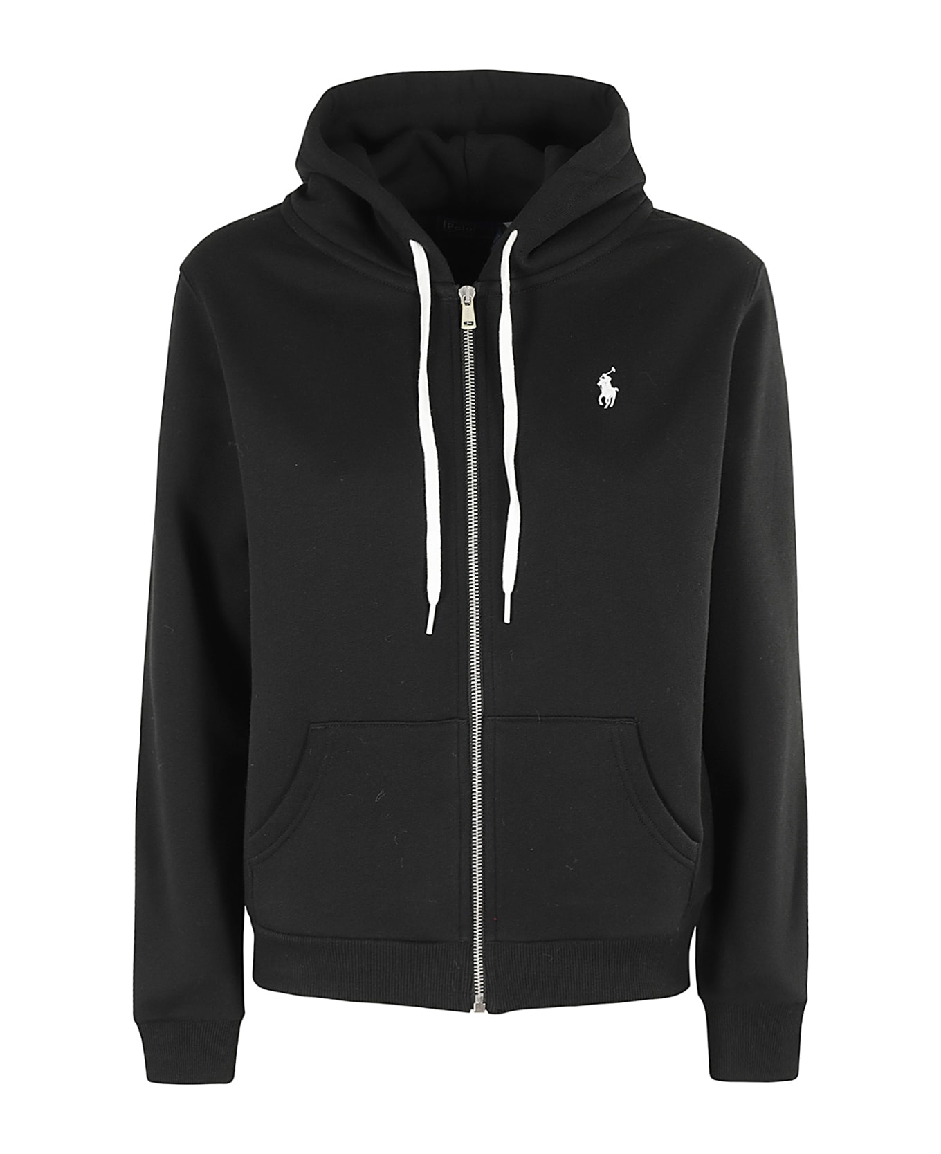 W Core Sweatshirt - Polo Ralph Lauren - Black color - Adjustable drawstring hood - Long sleeve - Front kangaroo pocket - Ribbed piping - Contrasting white embroidered chest logo - Front zipper closure - Regular fit