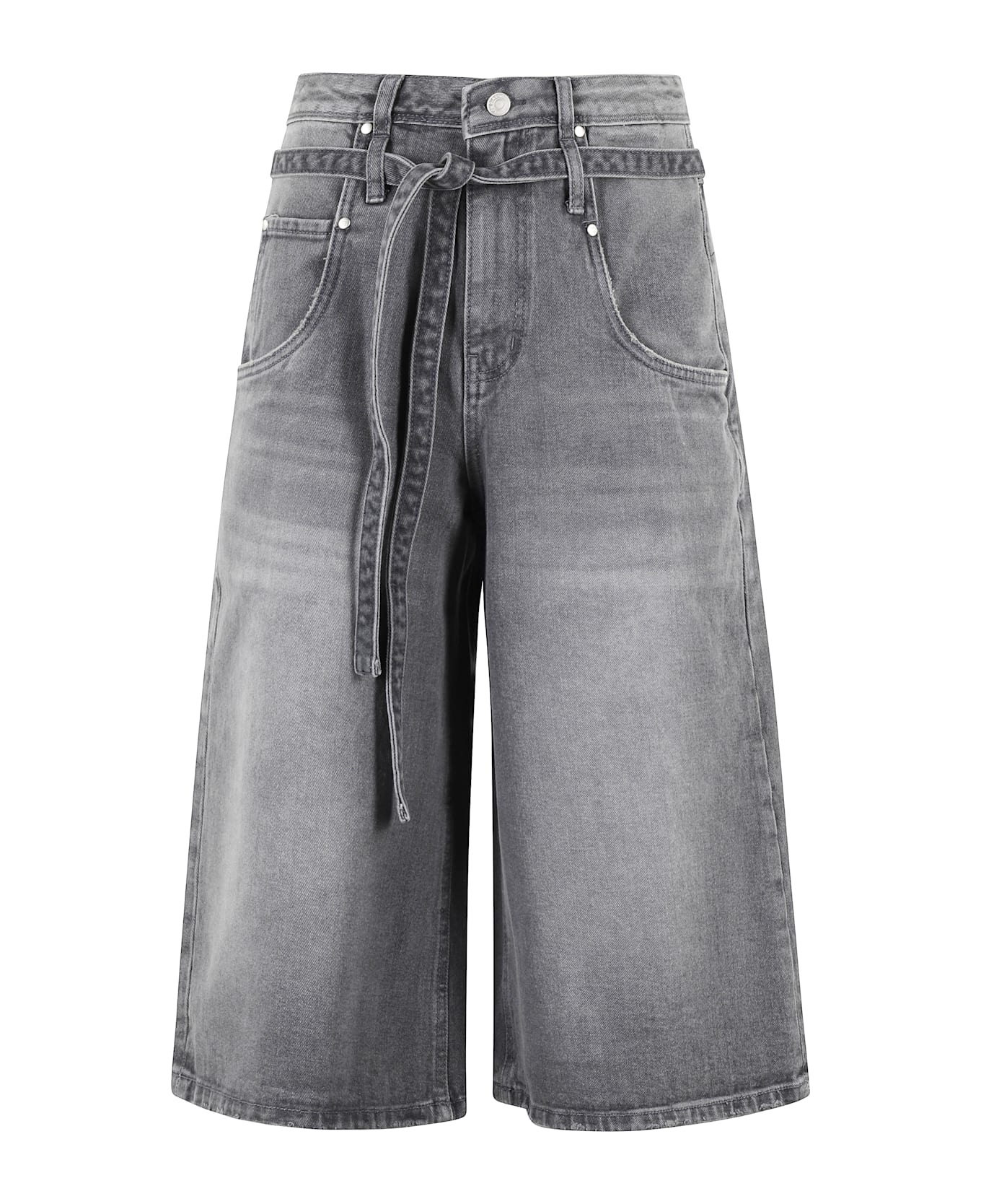 Belted Denim Bermuda Pants
