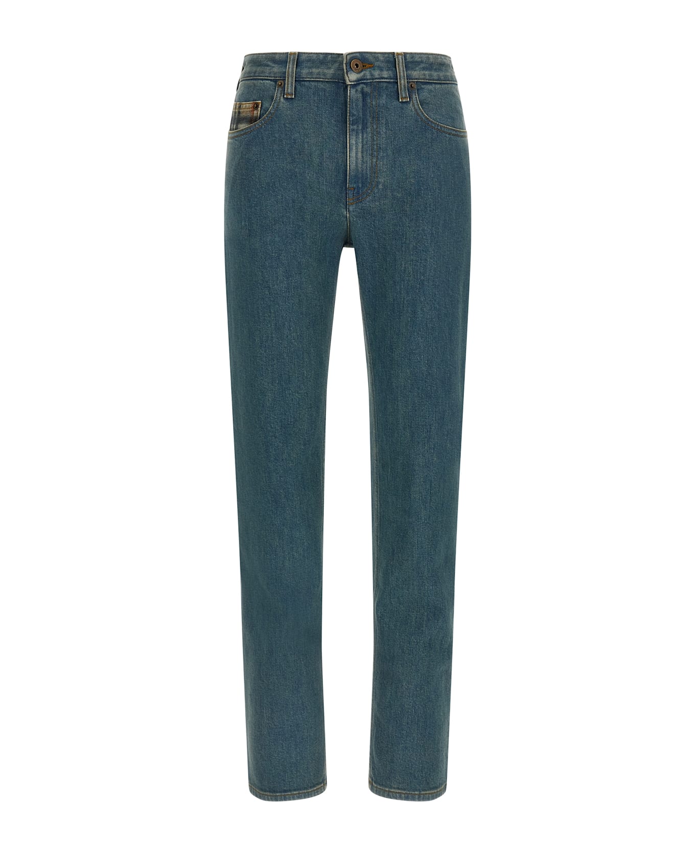 'Dalia' heavy stretch denim jeans with medium wash, contrast stitching, Burberry Check details in the pocket and inside the waist, mid waist, straight leg, front zip and button closure, five pockets, back suede logo tag.