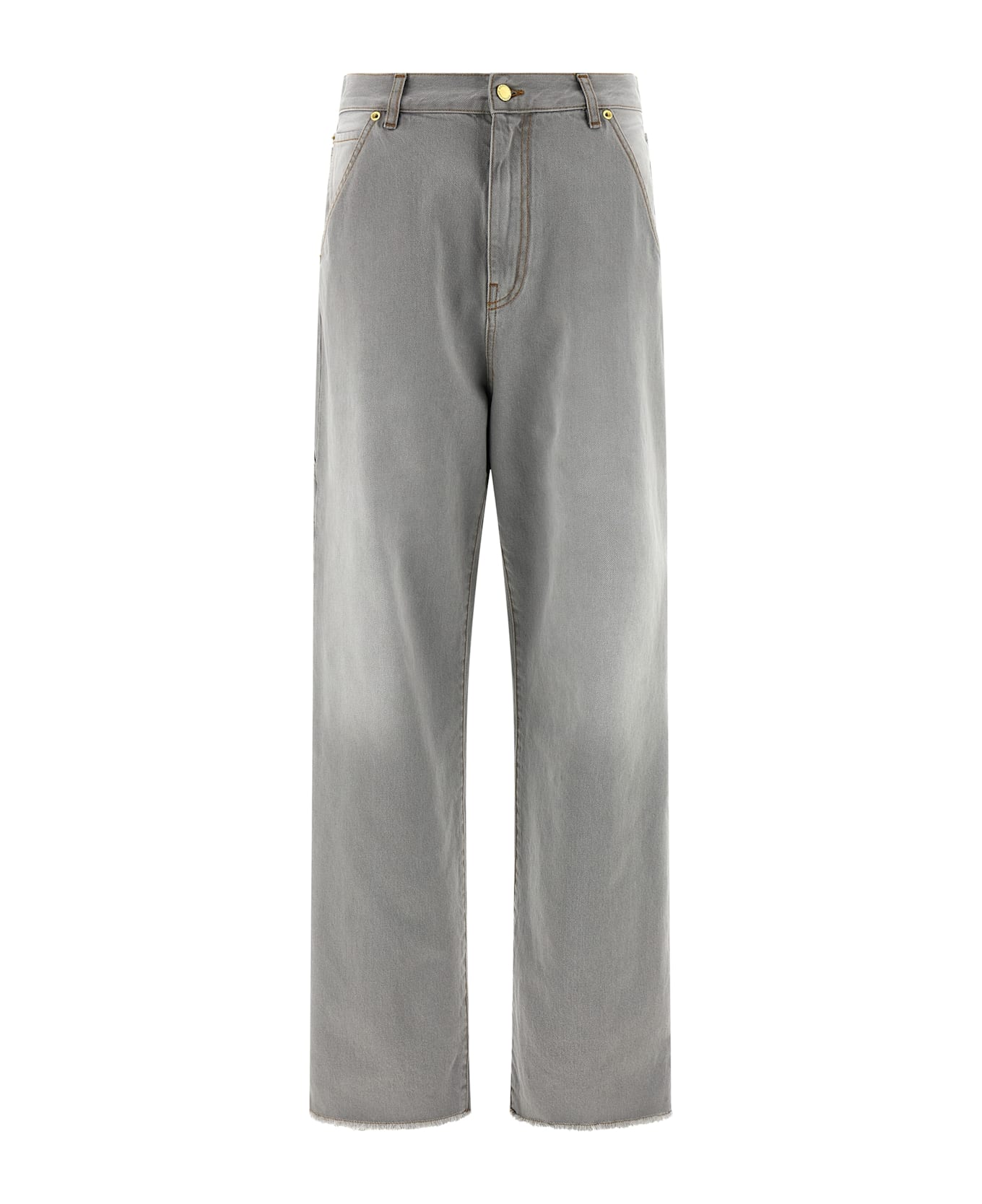 'Lisa' jeans in garment-dyed cotton denim with wide leg with back belt detail, zip and front button closure, five pockets, leg bottoms with raw cut hem.