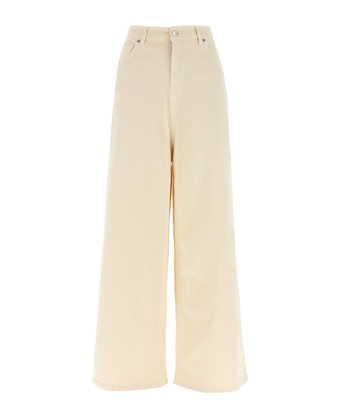 Garment-dyed stretch cotton denim jeans with high waist and loose leg, front zip and button closure, pockets, back leather logo tag. Composition: 97% cotton, 3% elastane