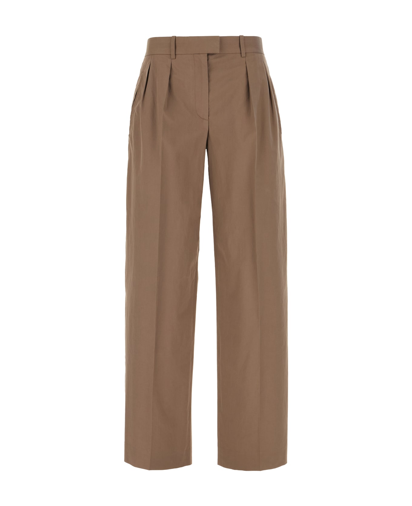 Pants realized in pure cotton characterized by inverted pleats. -Concealed zip, hook and button -Two slit pockets at the front and a slit pocket at the back