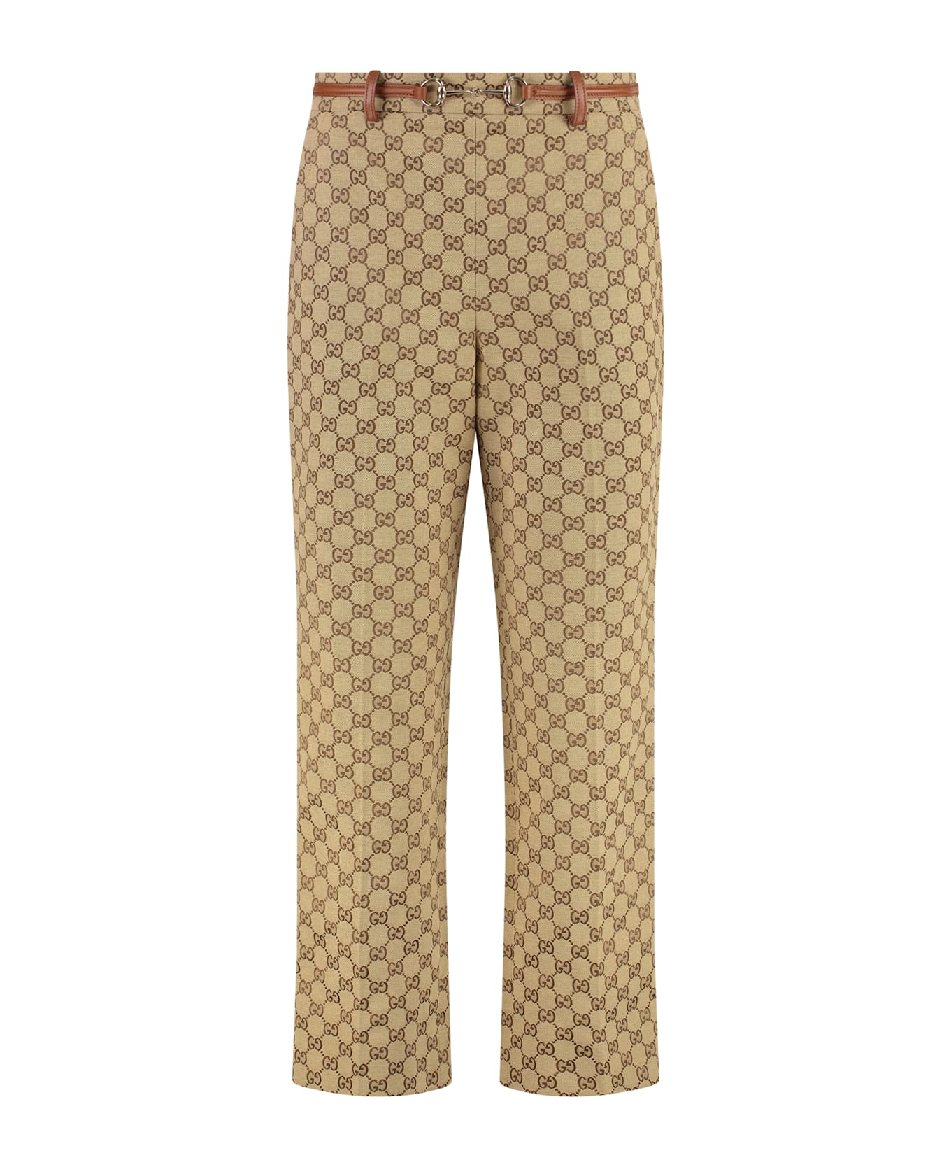 All over gg motif leather details metal horsebit two back welt pockets 25% silk, 70% cotton, 30% polyester, 75% acetate, 100% calf Composition: 25% % Silk, 70% % Cotton, 30% % Polyester, 75% % Acetate, 100% % Calf