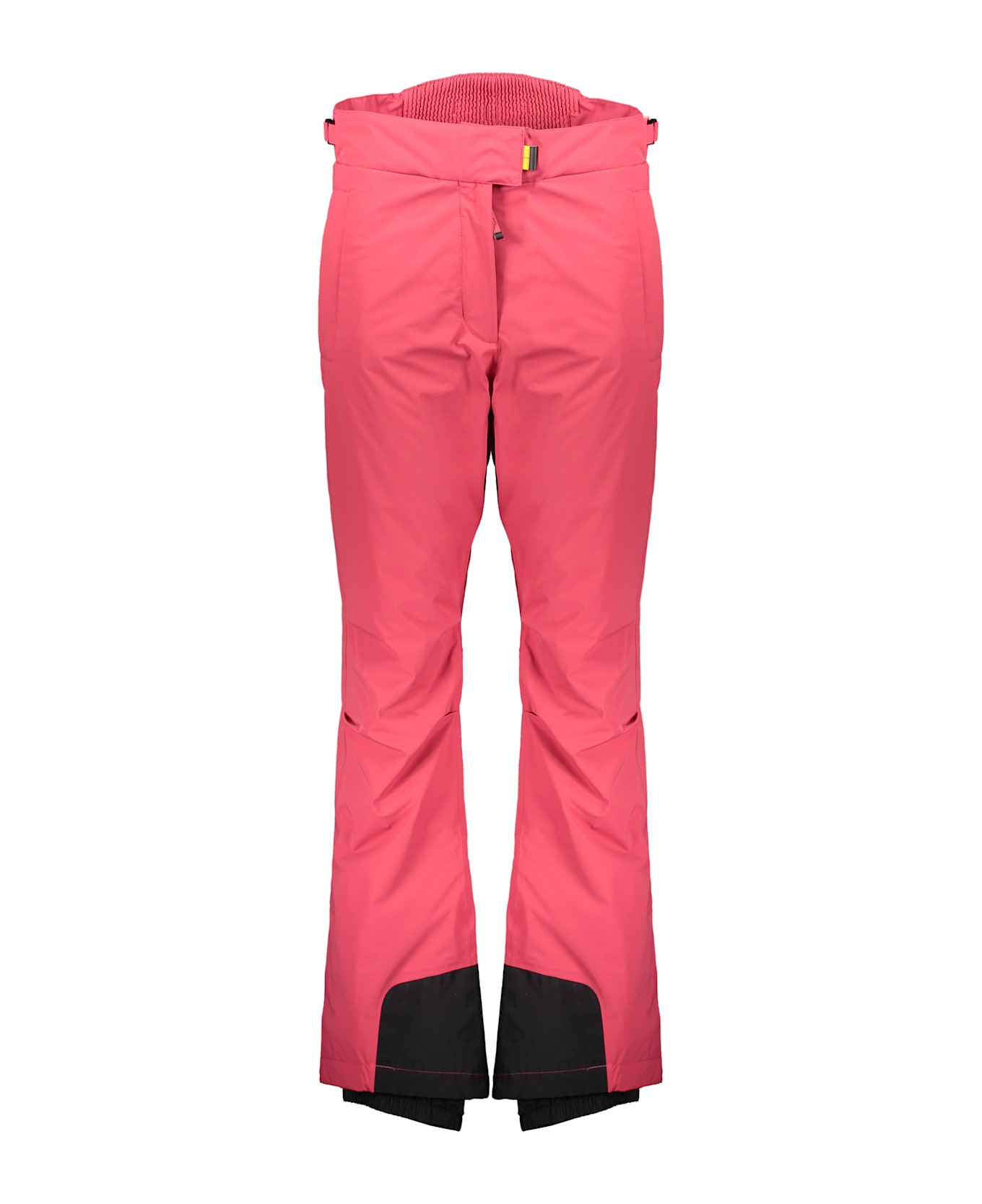 Ski pants in a vibrant pink color, designed to ensure comfort and style on the snow. they feature a loose fit with a flared cut towards the bottom, ideal for facilitating movement. the lower part is reinforced with black details, offering durability and protection. these pants come with an adjustable waistband for a personalized fit and a central zip closure. perfect for winter sports enthusiasts looking for both functionality and a pop of color. padding: 100% polyester