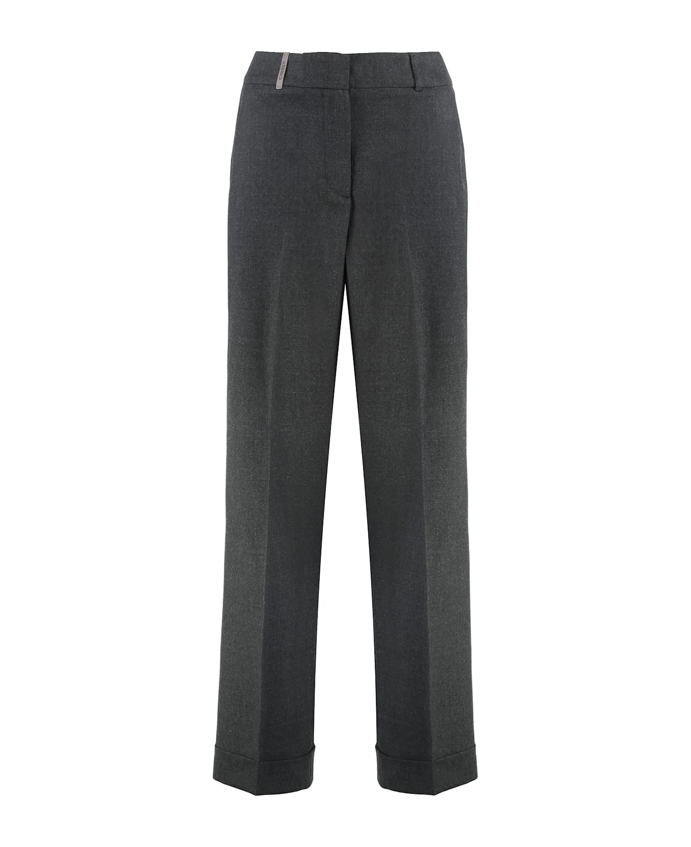 Pants in dark gray color, characterized by a comfortable fit and elegant lines. made from a soft and durable fabric, these pants feature a regular waist with side pockets. ideal for a casual or formal look, they can be easily paired with different styles of clothing, making them a versatile element in the wardrobe.