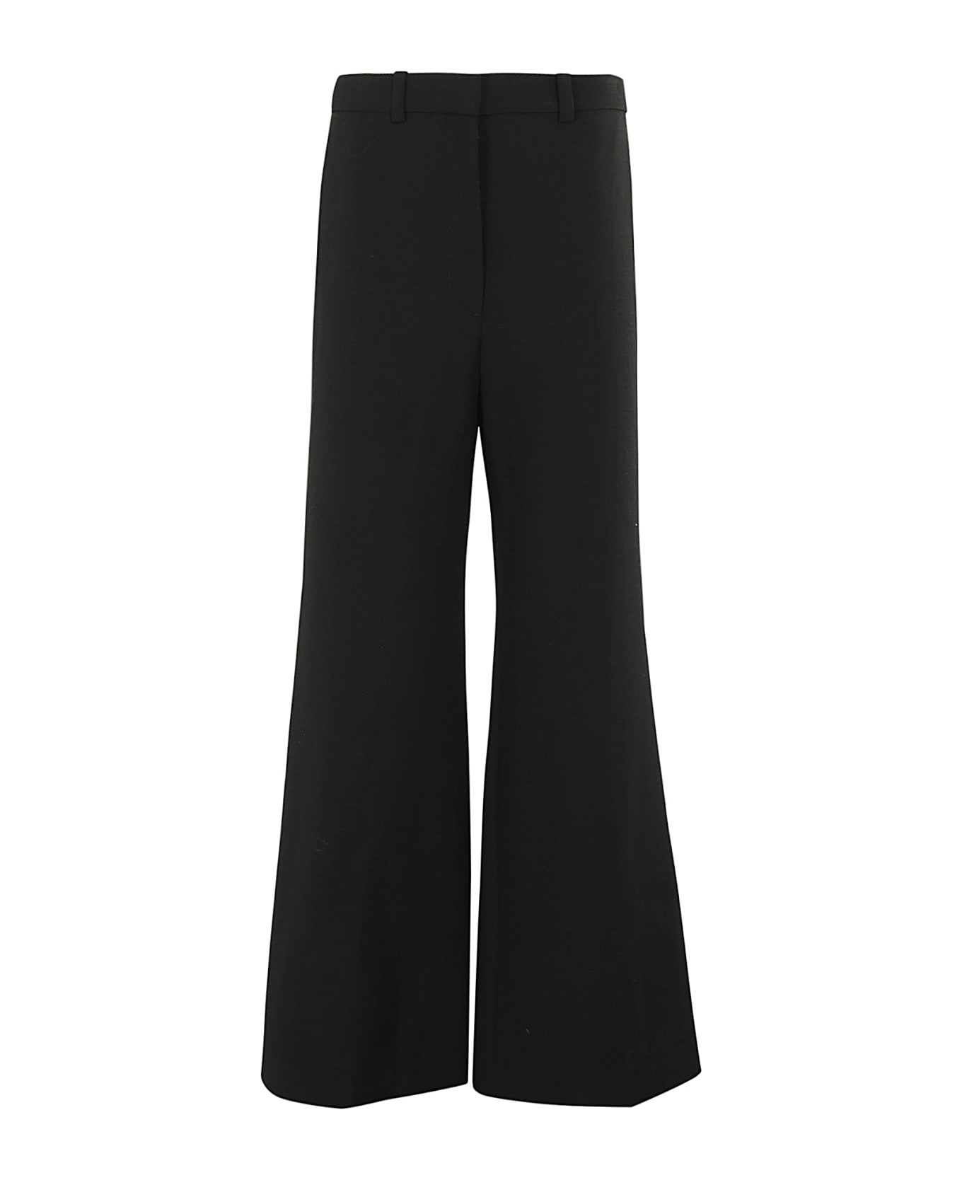 Pants - Low classic - Black color - Wide leg model - Waist loops - Flush side pockets - Closed back pockets - Concealed hook and zipper front closure