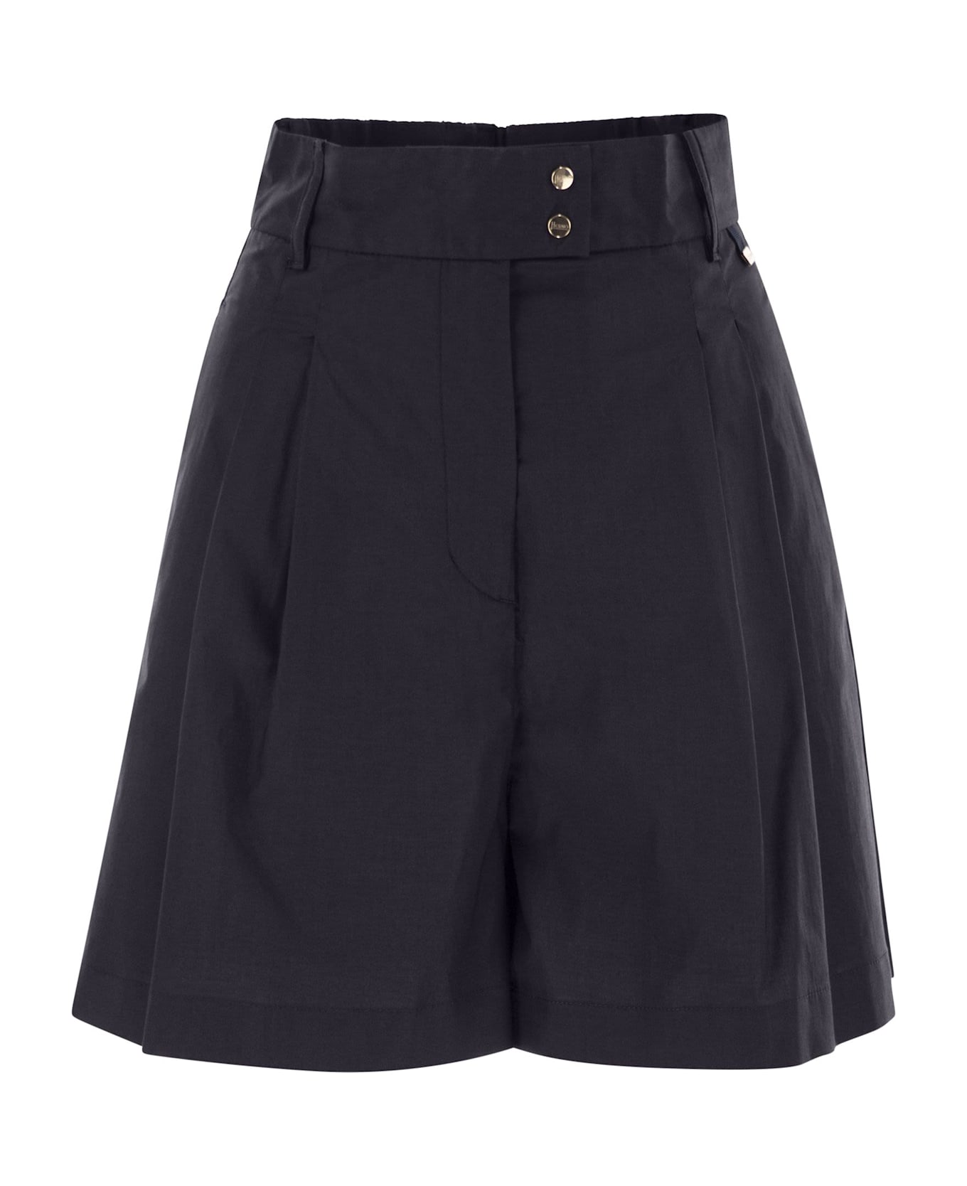 Shorts made of dyed stretch cotton, waterproofed and treated to create a slight ruched effect. The waterproofing process makes the garment perfect to wear on the move and is characterised by a refined line that casually interprets city looks. - Relaxed fit - Elastic insert at waist - Darts - Button and zip fastening - Flat pockets - Welt pockets on the back - Performance: Water-repellent treatment DESIGNER ID: PT000035D13164Z 9200 Composition: 96% Cotton, 4% Elastane Trimming: 55% Cotton 45% Polyester