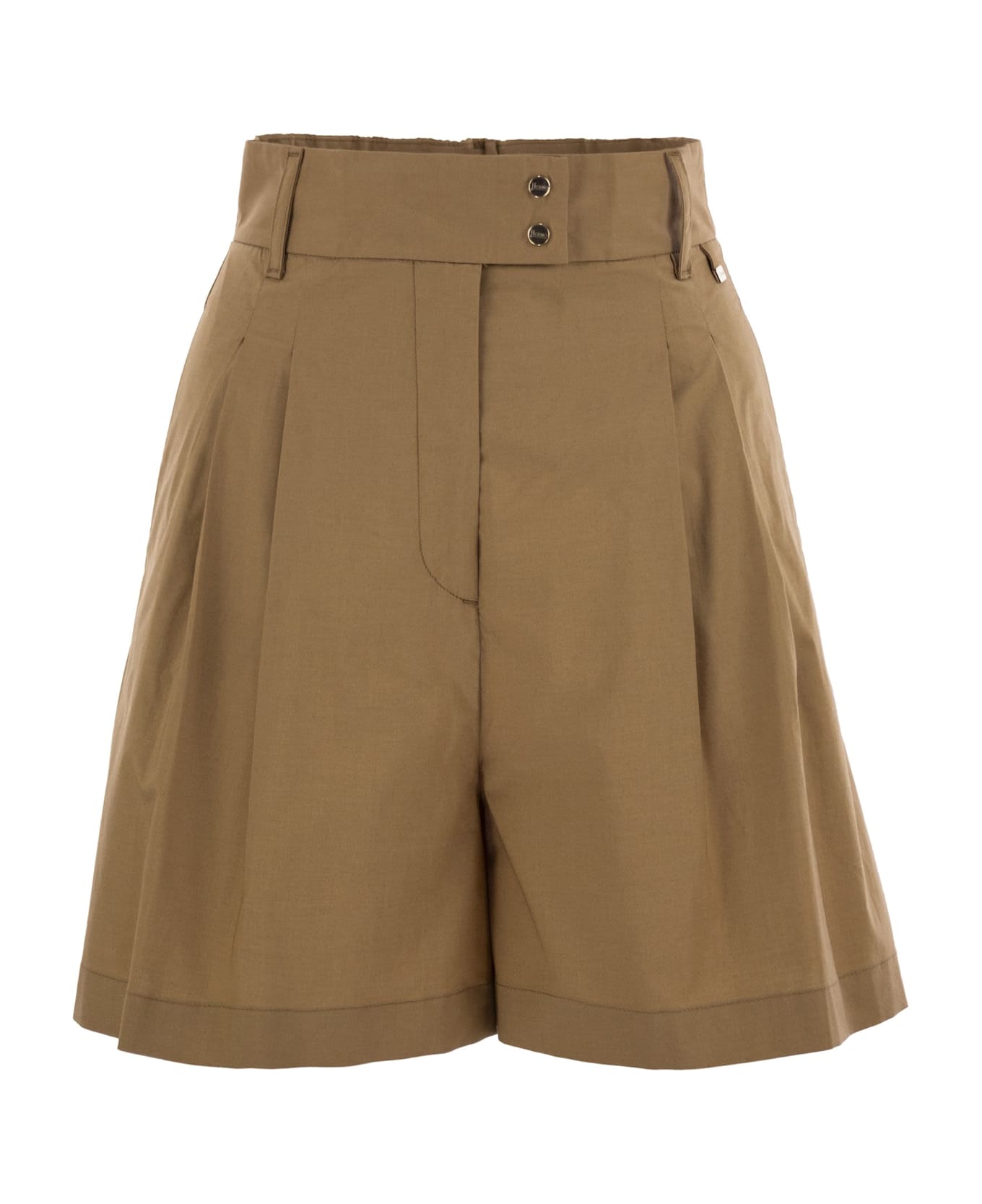 Shorts made of dyed stretch cotton, waterproofed and treated to create a slight ruched effect. The waterproofing process makes the garment perfect to wear on the move and is characterised by a refined line that casually interprets city looks. - Relaxed fit - Elastic insert at waist - Darts - Button and zip fastening - Flat pockets - Welt pockets on the back - Performance: Water-repellent treatment DESIGNER ID: PT000035D13164Z 2157 Composition: 96% Cotton, 4% Elastane Trimming: 55% Cotton 45% Polyester