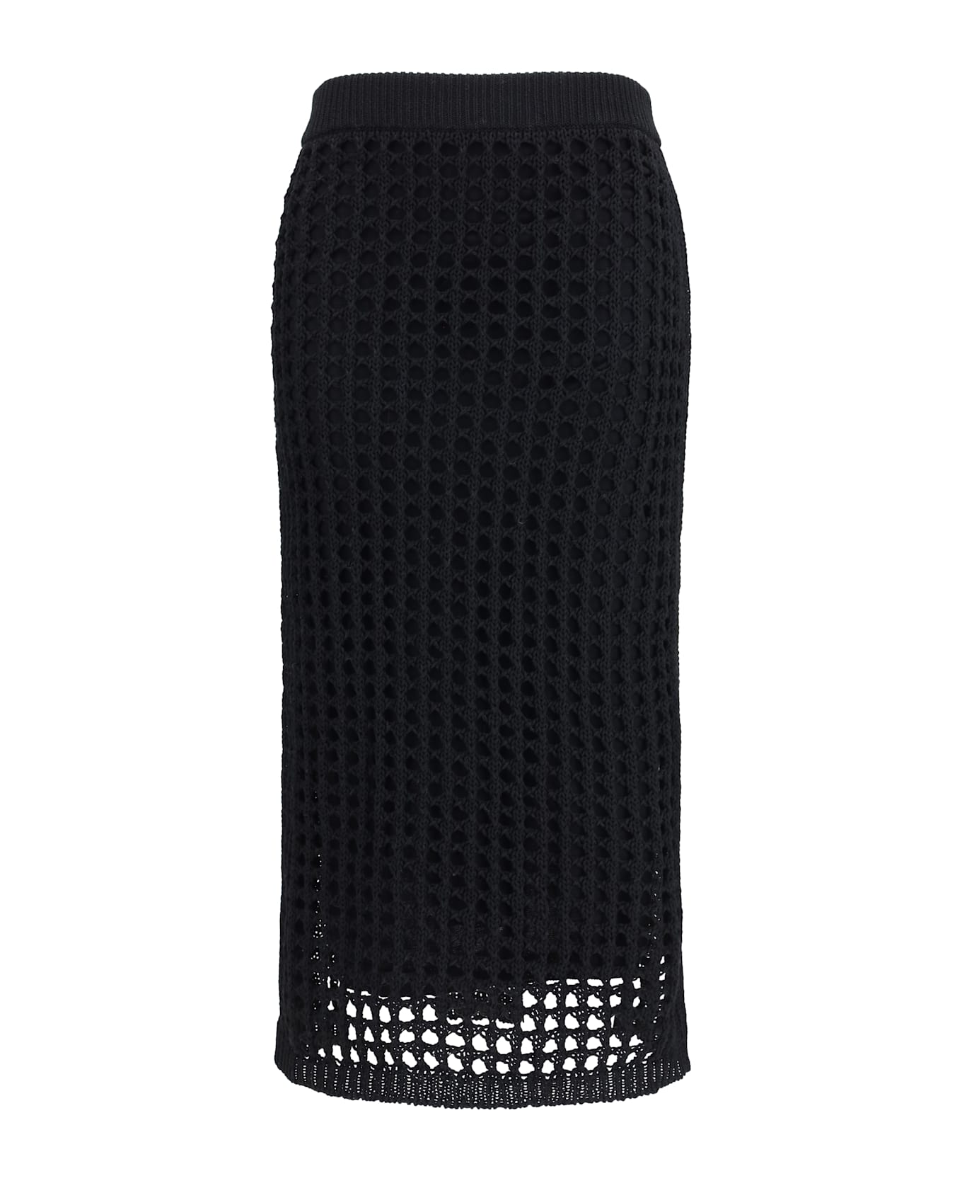 The cotton mesh skirt by max mara pure is a contemporary and refined piece, crafted from pure cotton tape with a see-through open-knit construction. it features a straight silhouette, ribbed elastic waistband, and tone-on-tone cotton lining, while the ribbed details along the sides add structure and style, making it perfect for modern and versatile looks.