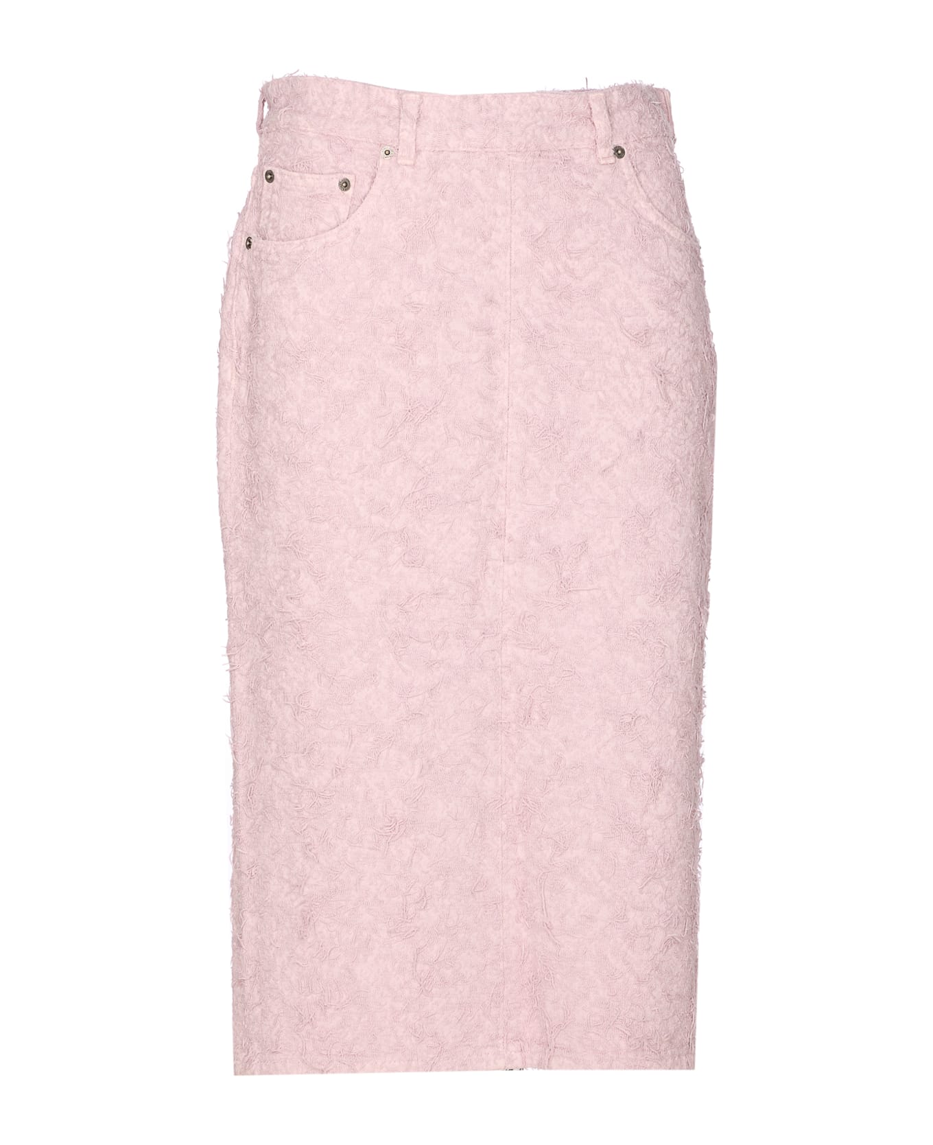 Haikure primrose pink Kim fur denim skirt, zip and buttons closure, midi, fur effect