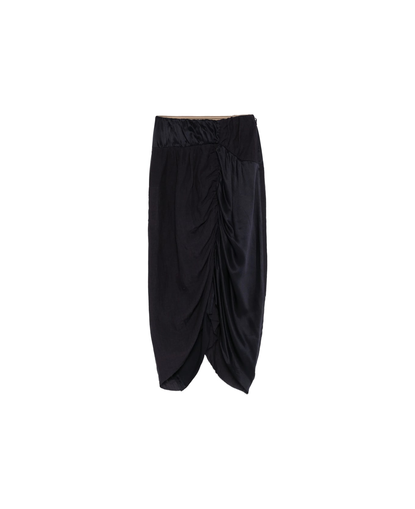 black ruched detailing tulip hem high-waisted satin waistband concealed zip fastening
