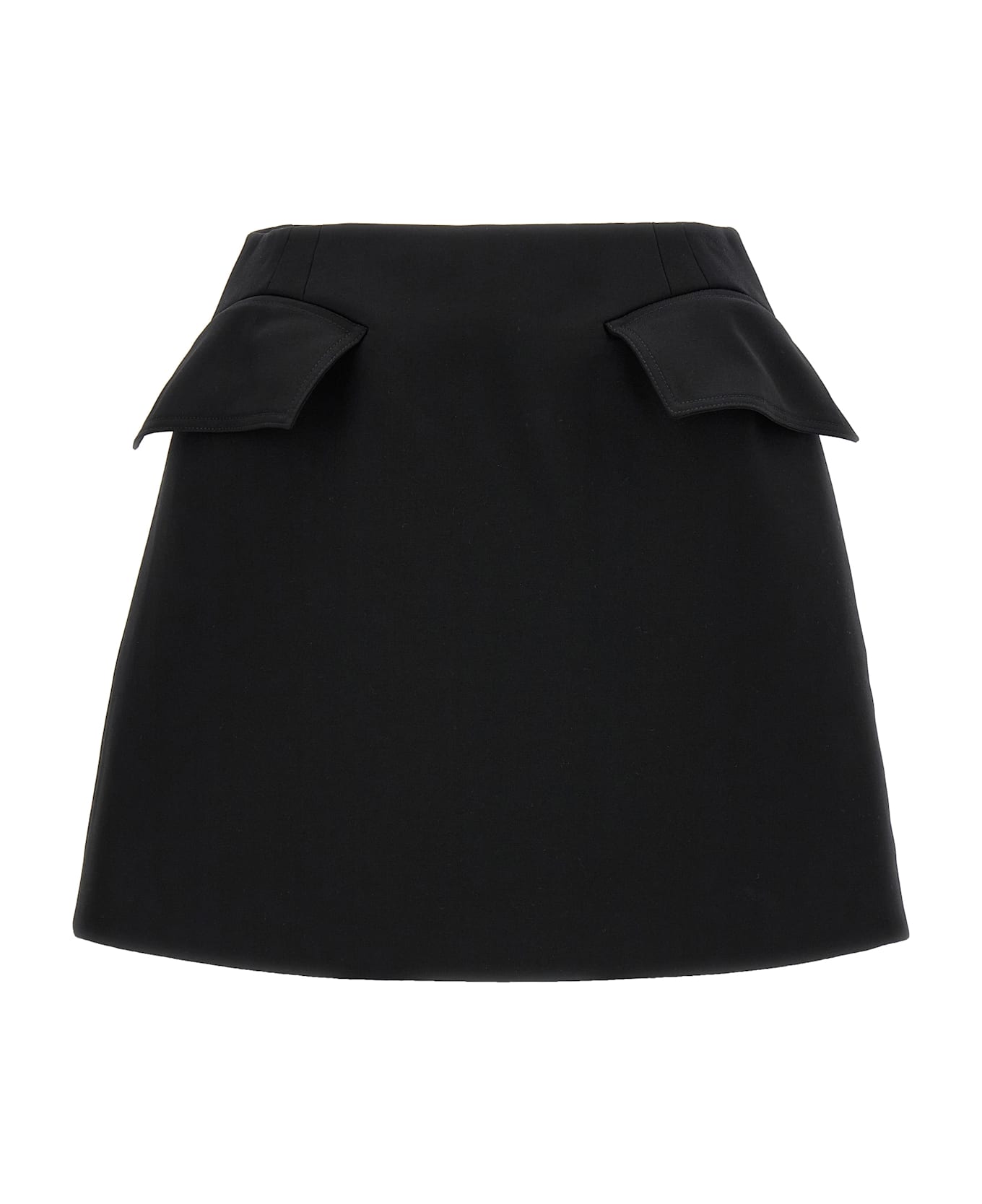 Wool mini skirt, silk blend lining, front trompe l'oeil pockets, back zip closure, pockets. Composition: 100% wool