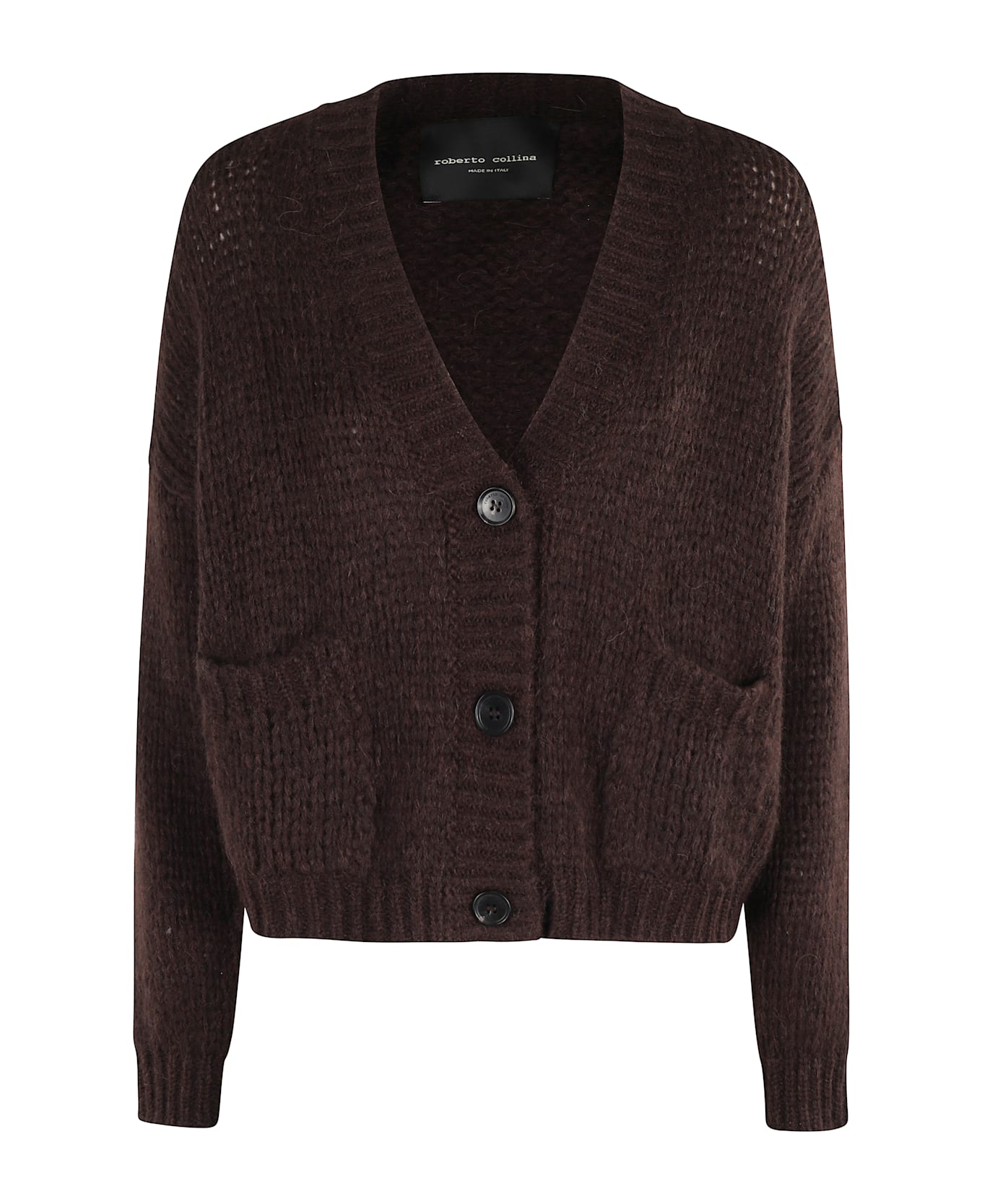 Cardigan -Roberto Collina -Brown color -Three-quarter sleeve -V-neck -Center button closure -Front pockets