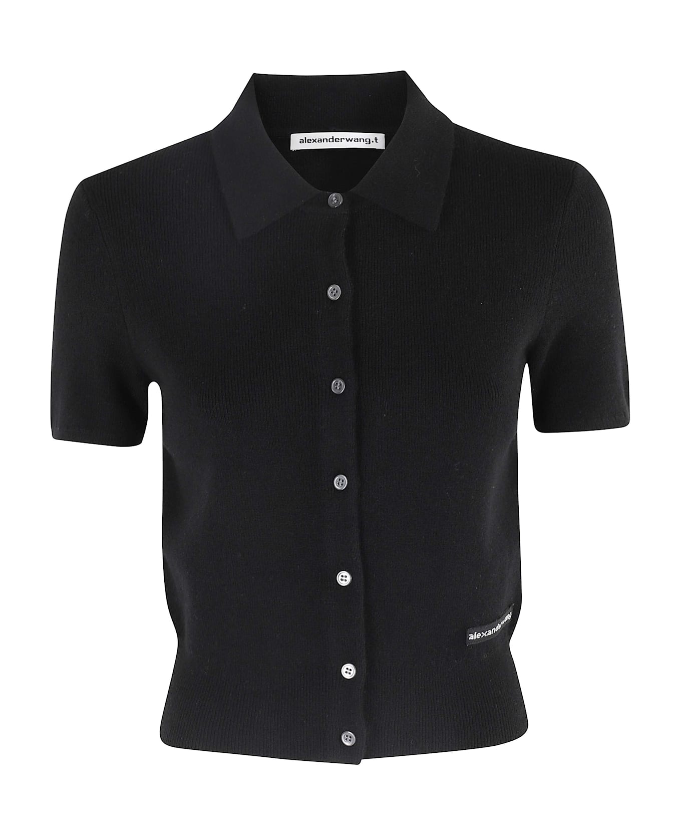 Cardigan sweater -T By Alexander Wang -Black color -Short sleeve -Center button closure -Classic collar