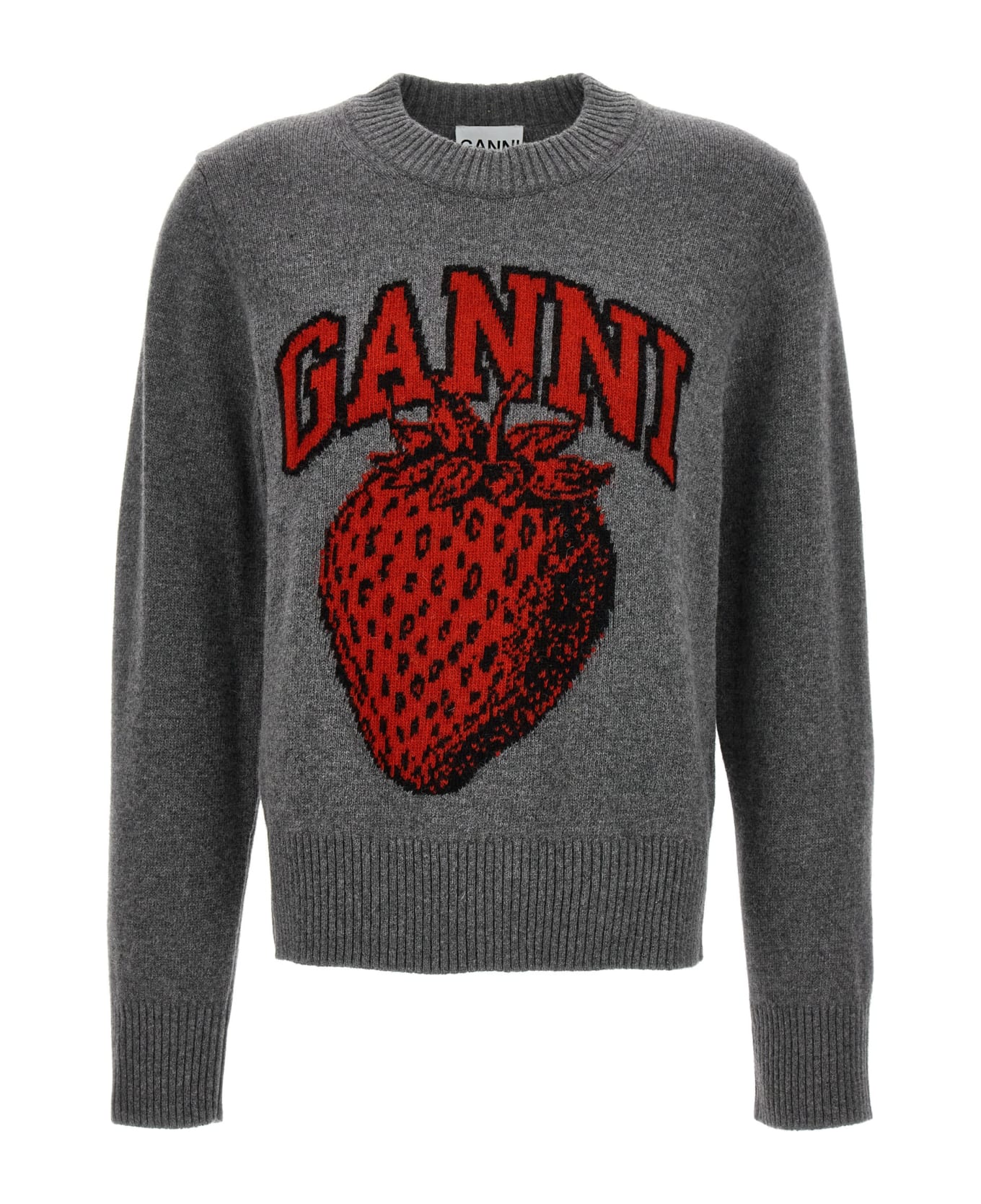 'Strawberry' wool sweater with front jacquard pattern, crew neck, long cuffed sleeves. SUSTAINABLE: Product made with recycled wool. Composition: 80% wool, 20% polyamide