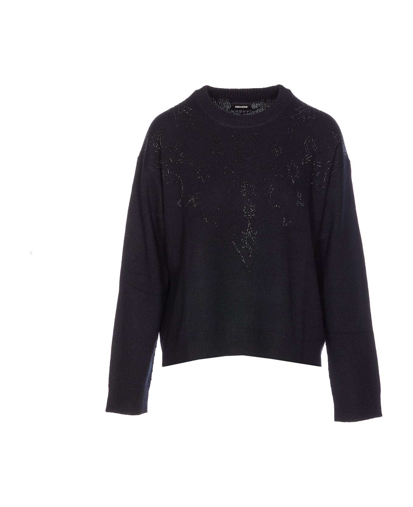 Zadig&Voltaire black Markuz sweater, crewneck, long sleeves, all over strass details, embroidered logo tone on tone at bottom Composition: 100% Cashmere
