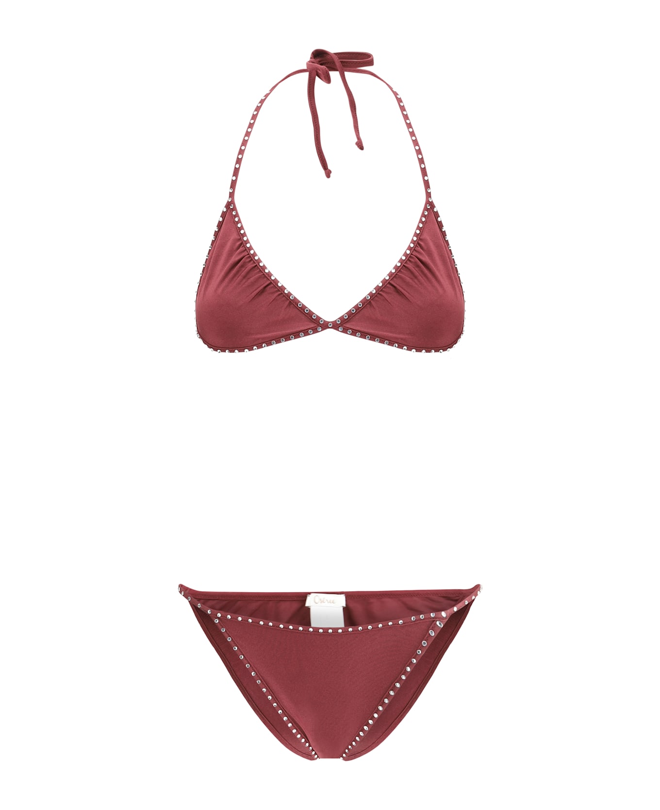 The crystal swimsuit by oséree is an elegant and sparkling bikini, ideal for those seeking a sophisticated and glamorous look. the triangle top is embellished with shimmering rhinestones that catch the light, while the back closure with ties to tie allows the garment to fit the figure perfectly. the classic bottom completes the set, which is also decorated with sparkling rhinestones, adding a touch of luxury.
