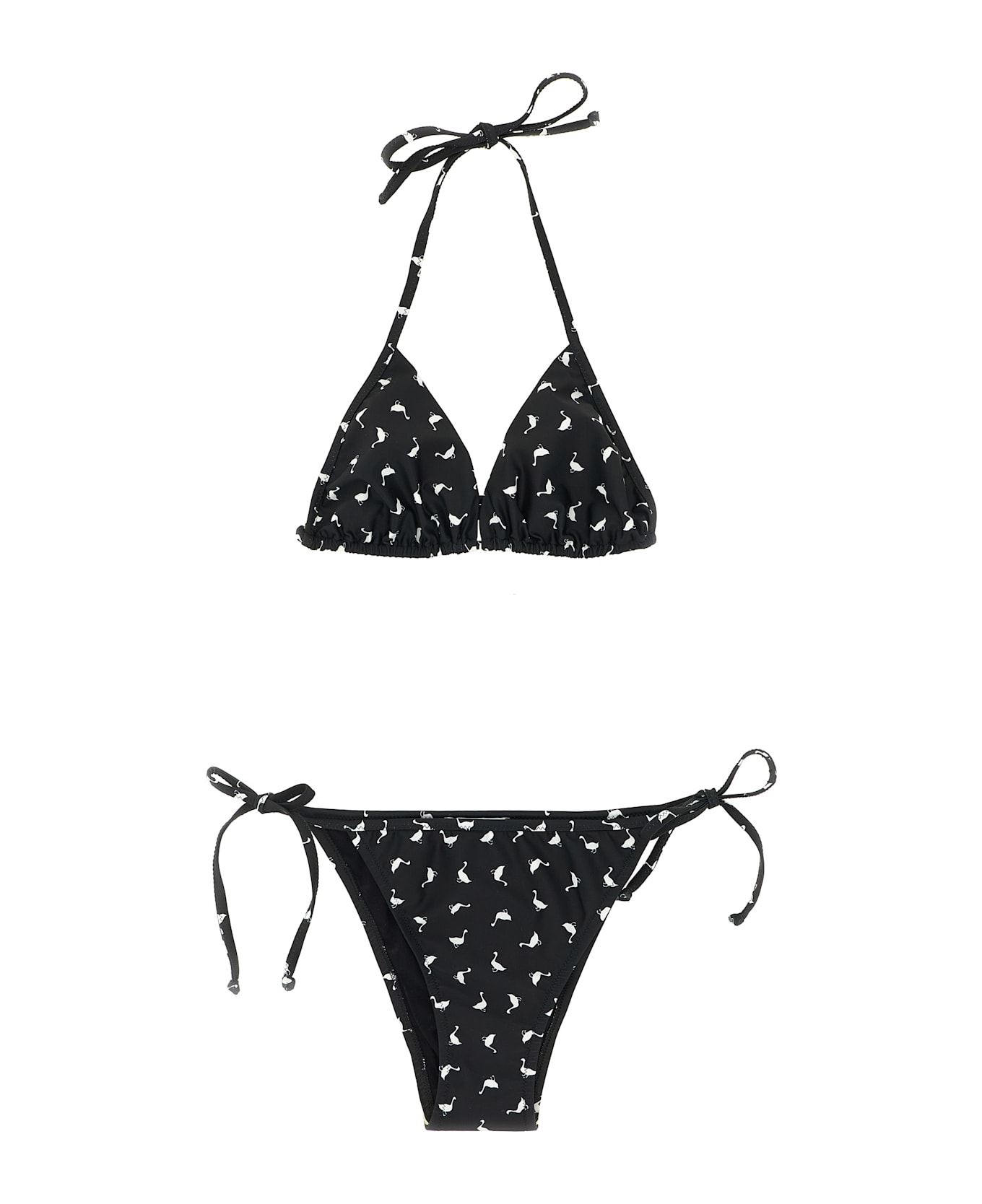 All-over 'Goose' print Lycra bikini, triangle top with lacing, briefs with medium coverage and lacing on the sides.