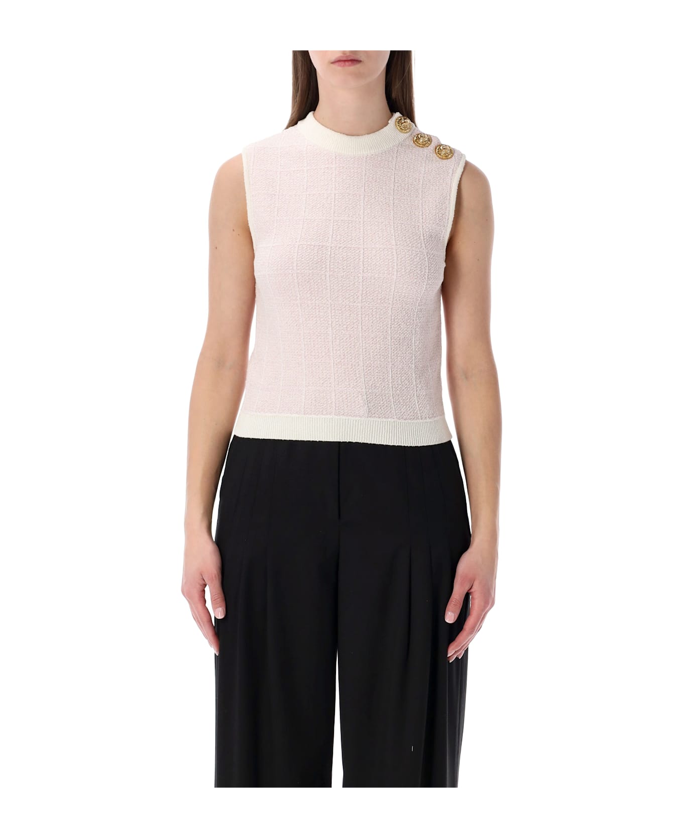 Balmain Tweed Crop Top With Buttons