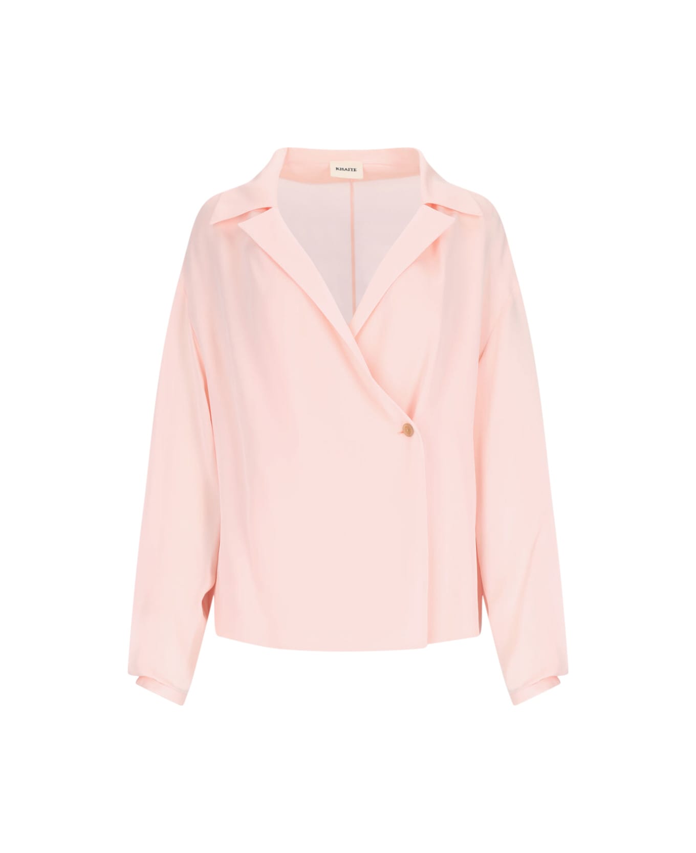 Khaite 'Ashton' pink silk shirt with draped design, classic lapels, asymmetric button closure on the front, button cuffs, straight hem. Composition: 100% Silk