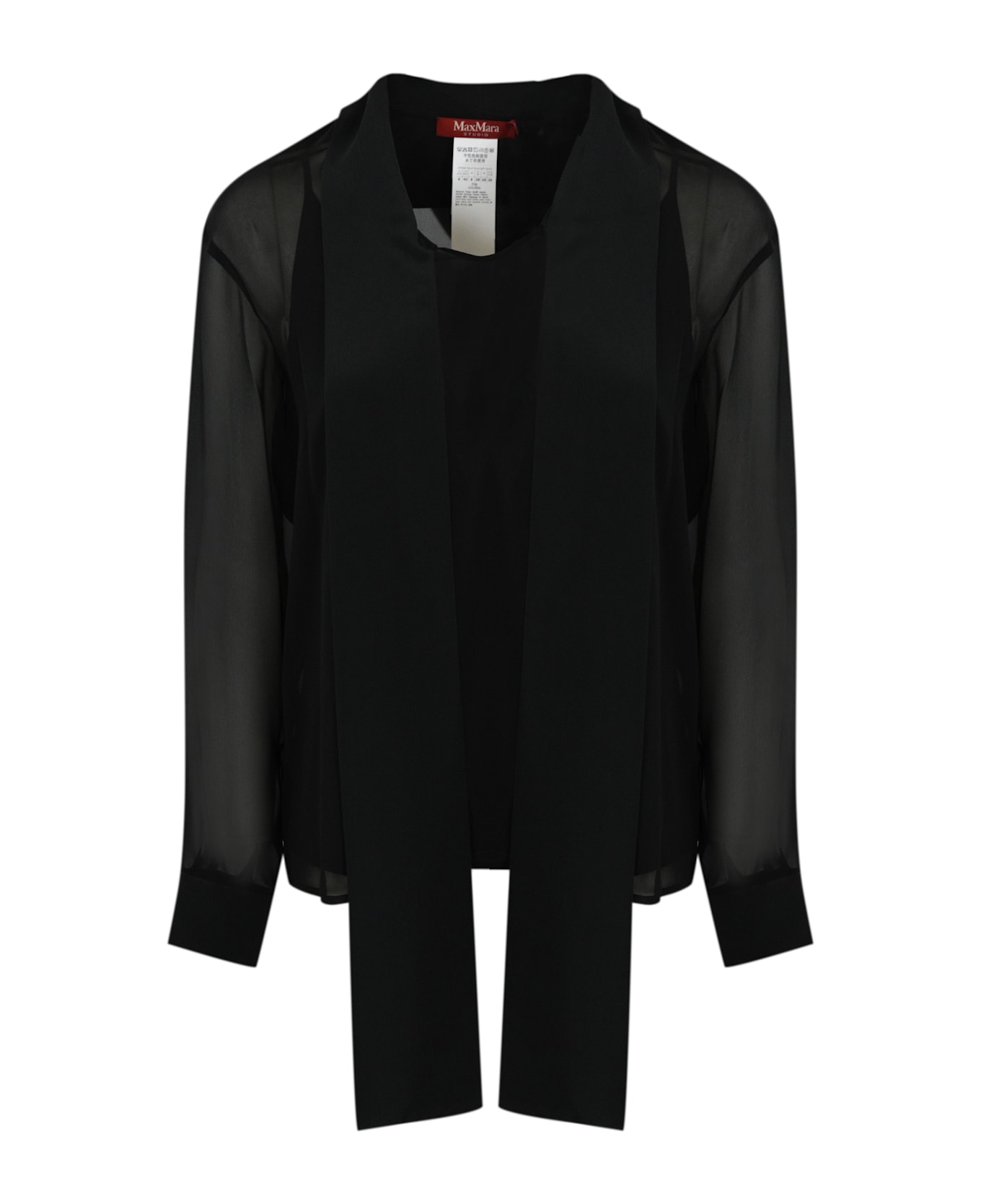 women's silk blouse: pure washed silk georgette long sleeves cuffs with buttons fluid silhouette v-neck with sash to tie details in crepe de chine shoulder dropped removable viscose slip regular fit composition: 100% silk petticoat: 100% viscose