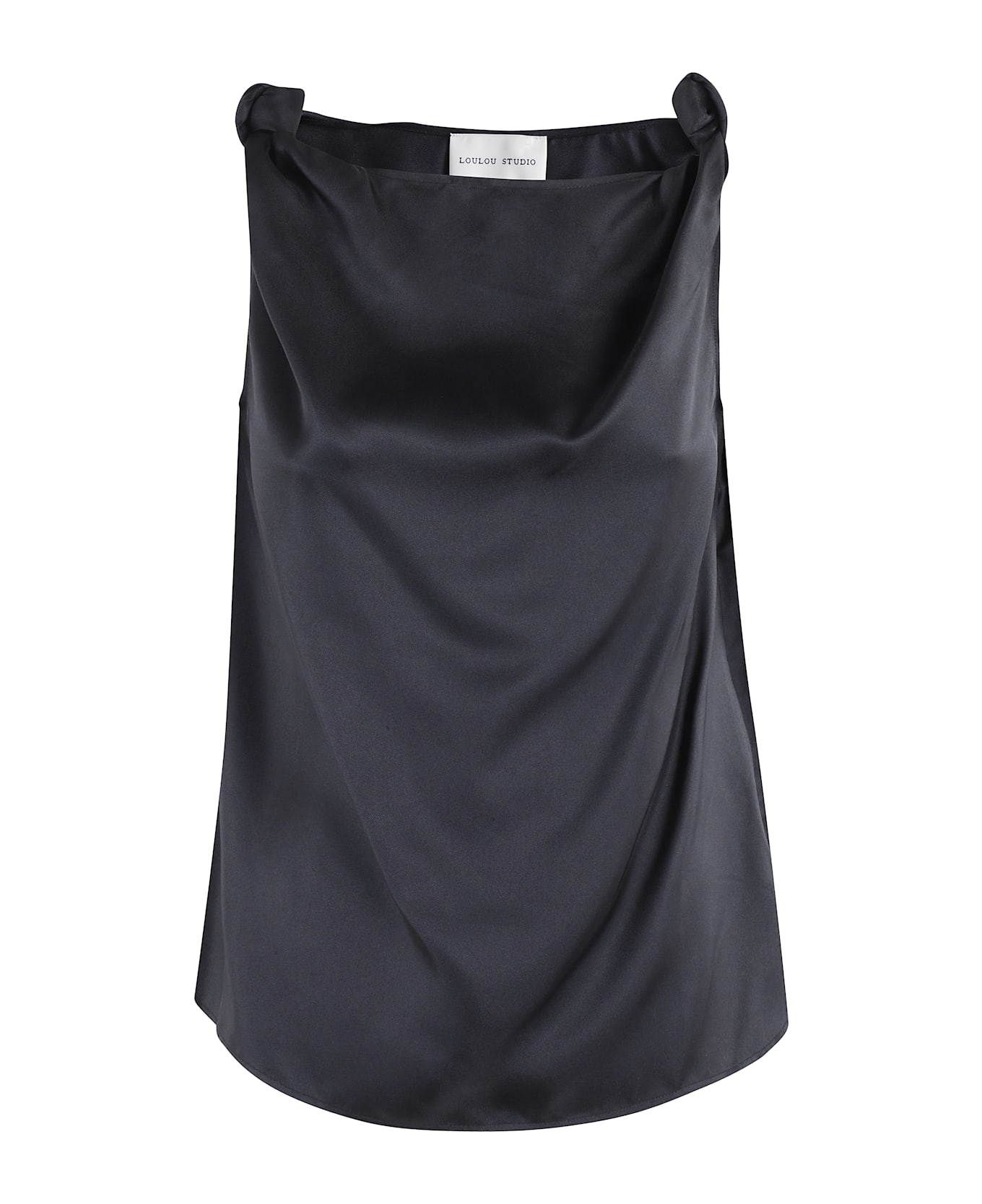 Remy top - Loulou Studio - Black color - Silk fabric - Straight neckline - Torcion straps - Side zipper closure - Regular fit