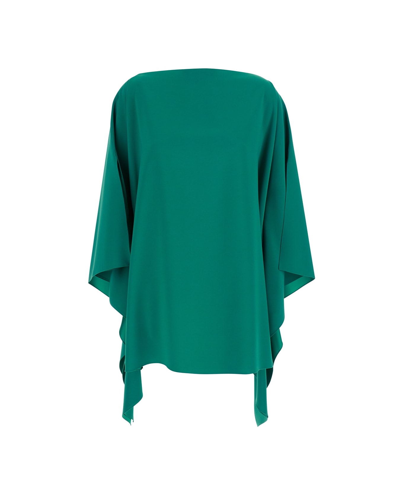 'eve' Green Top With Boat Neck And Draped Sleeves In Tech Fabric Woman