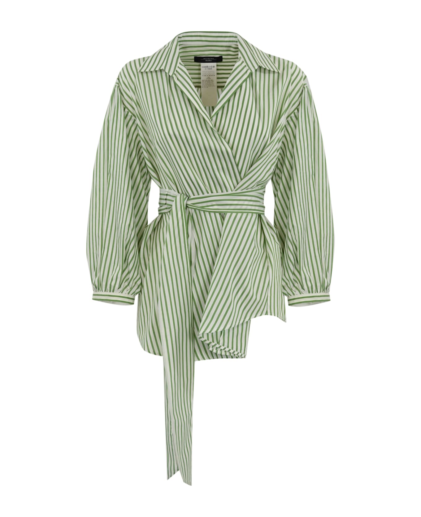 women's cotton silk shirt: cotton silk canvas 3/4 sleeves wrap closure cross v-neck collar dropped shoulder cuff at bottom stitch sash loose fit composition: 82% cotton, 18% silk